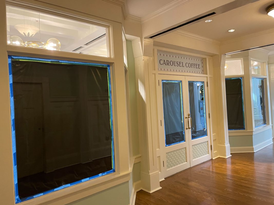 Construction continues at Disney’s BoardWalk, where new dining venues are coming soon. Today we found that Carousel Coffee signage has been installed inside Disney’s BoardWalk Inn.