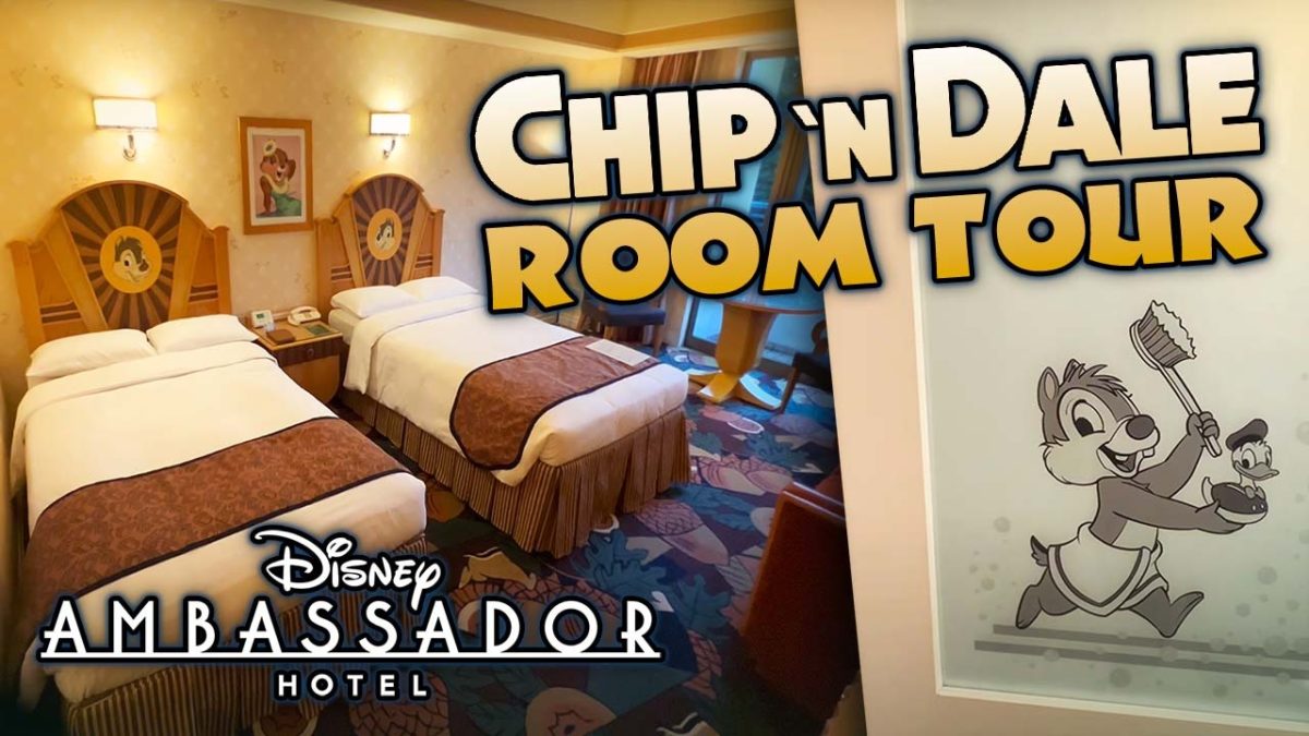 During a recent trip to Tokyo Disney Resort, we stayed in a standard floor Chip ‘n Dale room at the Disney Ambassador Hotel. This hotel is themed to America in the 1930s during the golden age of Hollywood. it features elegant art deco designs and a variety of guest rooms themed to Disney characters. In this case, the room is themed to those beloved chipmunks, Chip and Dale (and their friend Clarice too).