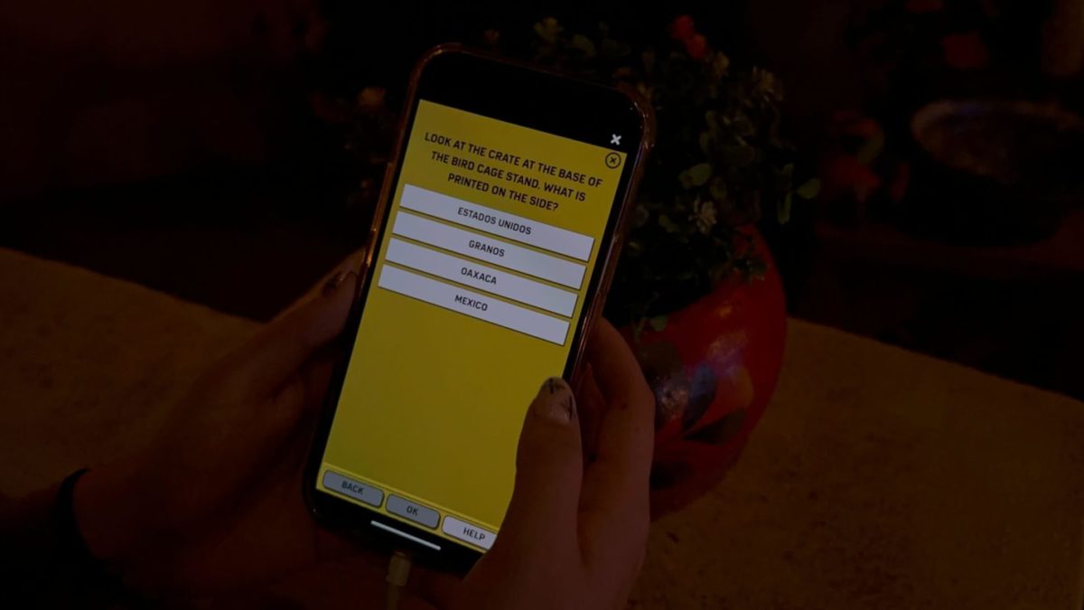 Once in front of the skeleton, we had to find its Mexican name and then activate the spy robot. After moving away, the ducks were able to download a map.