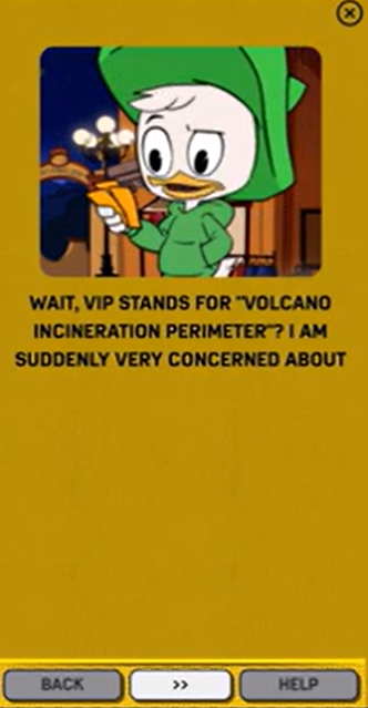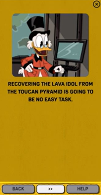 At the start of this adventure, Webby informs us we’ll be participating in the archaeological expedition of the century. We’ll be recovering the Lava Idol of Puerta Toucani, which Scrooge says will be no easy task. We’ll be crowd-sourcing and live-streaming from the Lavapalooza Food Fest.