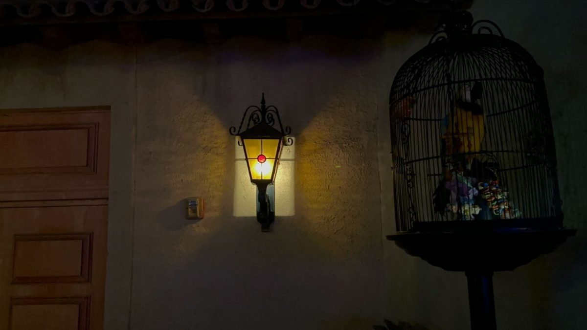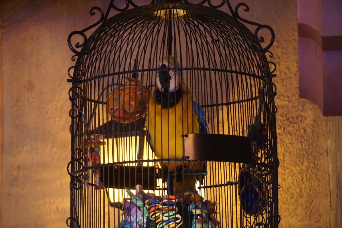 Specifically, she was on the ramp near this birdcage.