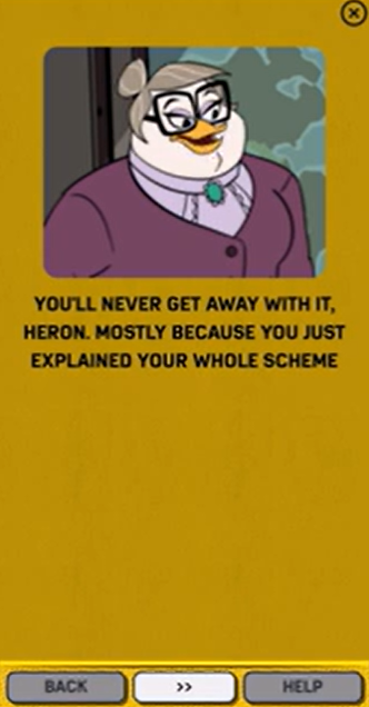 Black Heron calls Mrs. Beakley Agent 22 and Beakley references S.H.U.S.H., the agency in “DuckTales” that was trying to bring down F.O.W.L.