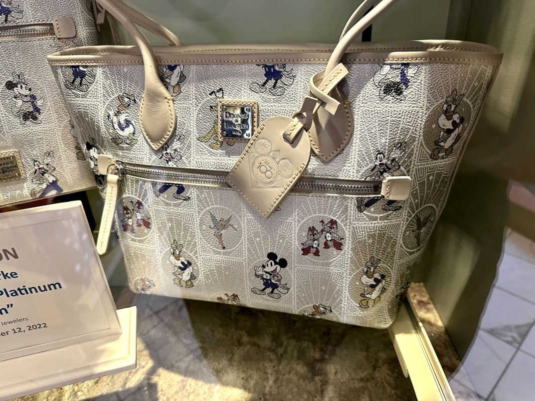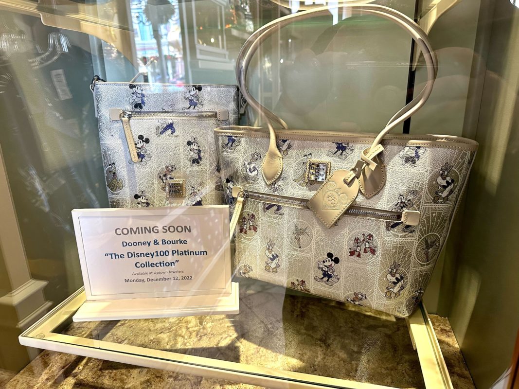 We were able to get a preview of what the Disney 100 Platinum Collection bags will look like at Uptown Jewelers in Magic Kingdom.