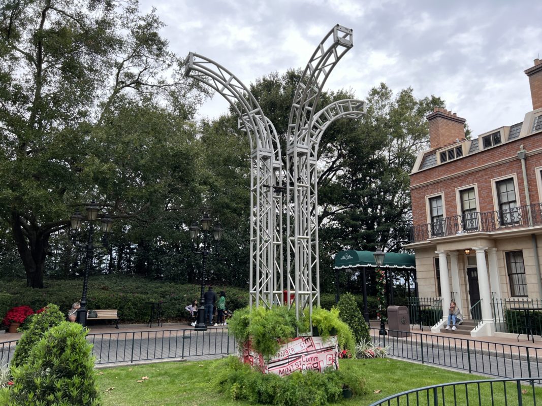 “Cheers to the New Year: A Sparkling Celebration” will bring DJs and dance parties to the U.K., Italy, Japan, and China Pavilions around EPCOT’s World Showcase. A first look at some of the entertainment support structures suggests this year’s celebration will continue the same fun seen last year, including some mesmerizing light shows.