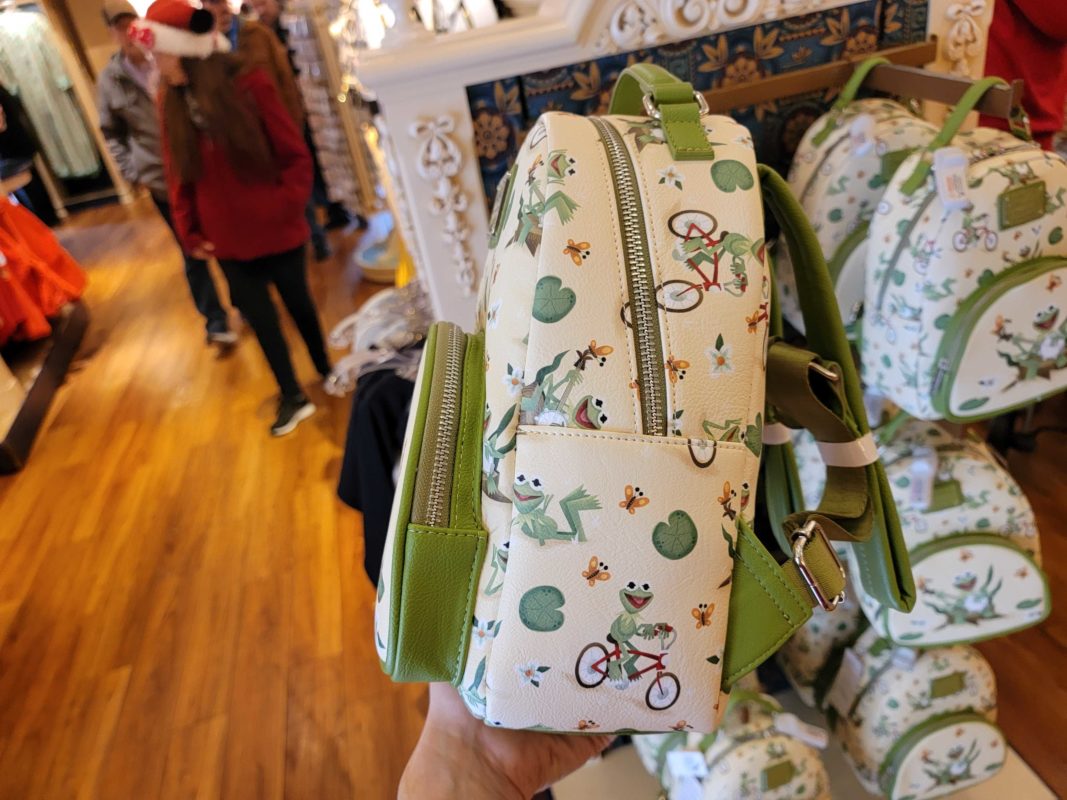 It’s time to play the music, it’s time to light the lights! Kermit the Frog has hopped into Disneyland this week and brought his banjo with him! We found him on this new Kermit the Frog Loungefly backpack at Disney Clothiers on the Main Street, U.S.A.