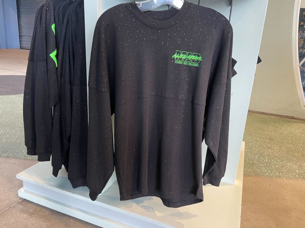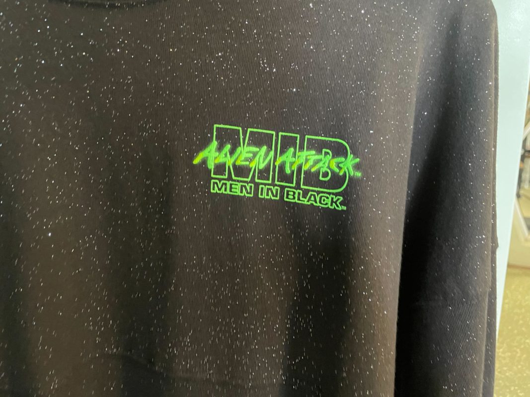 That’s right, Universal Orlando partnered with Spirit Jersey for an attraction-specific edition, we’re in shock too! Men in Black: Alien Attack has the honor of being the first attraction-specific Jersey we’ve seen! We’ve found themed clothing for Men in Black: Alien Attack before, but these make a bold statement.