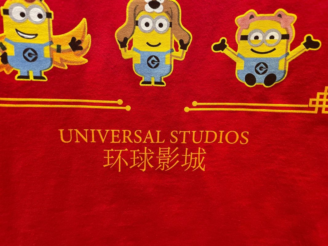 The bottom of the shirt says “Universal Studios” in both English and Mandarin.
