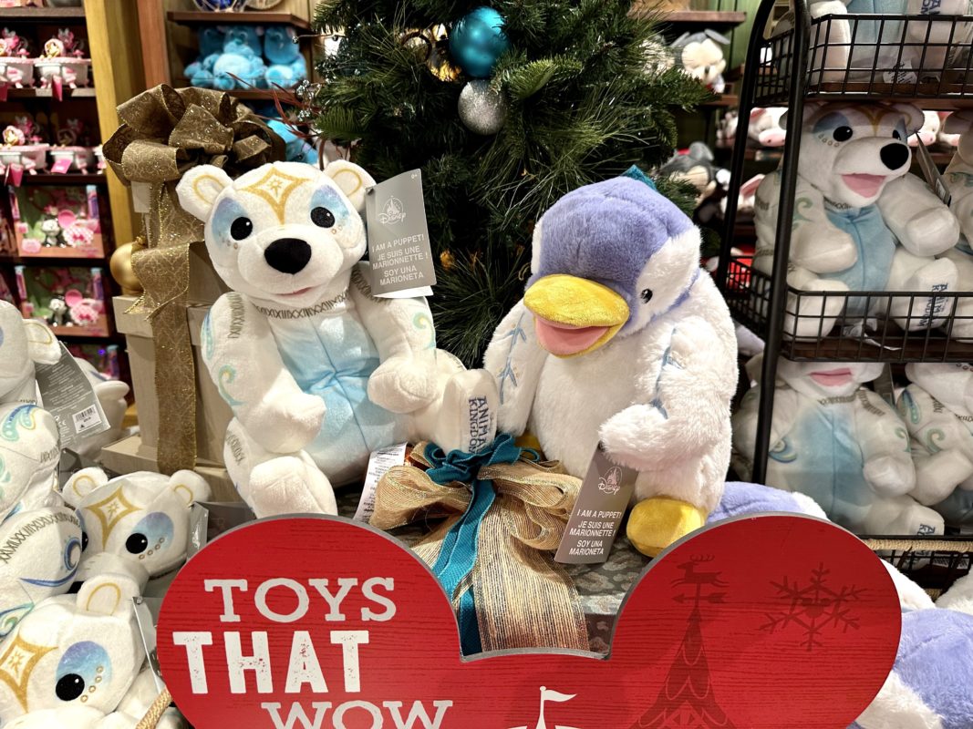Plush puppets of the baby penguin and polar bear from “Merry Menagerie” are available for purchase in Riverside Depot. We’re so happy to see that these plush puppets are back again this year.