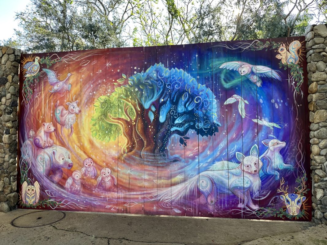 The “Merry Menagerie” mural is now up across from Tiffins.
