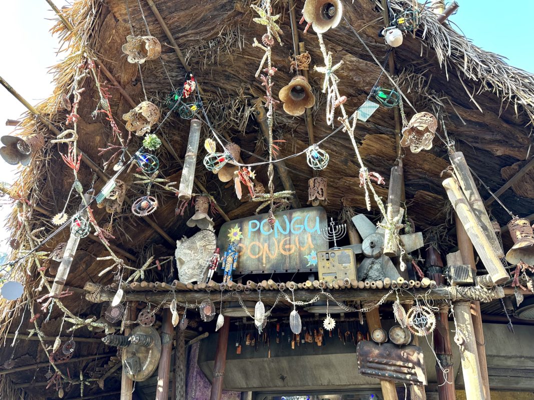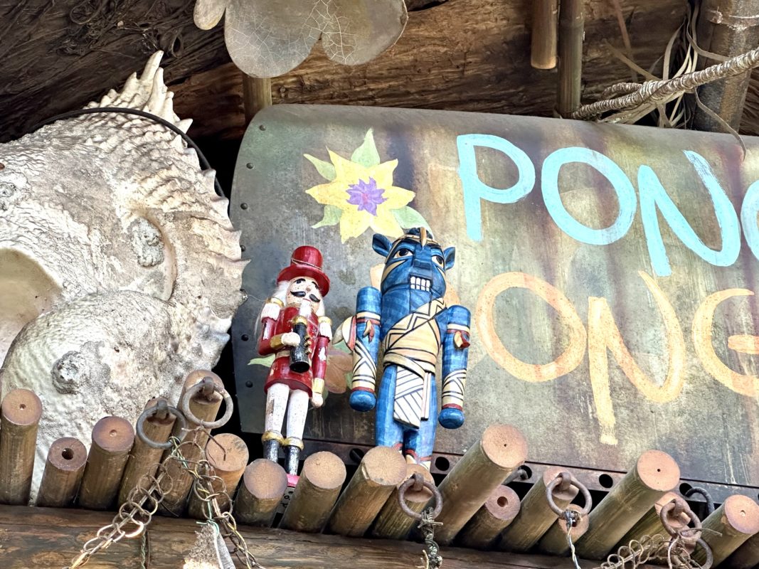 A Na’vi inspired nutcracker and regular nutcracker are right by the sign for Pongu Pongu.