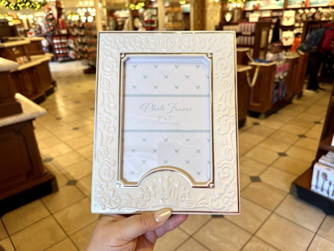 We found the perfect wedding gift for that Disney fan in your life. This Disney Fairytale Weddings frame is now available in the Emporium. The ceramic frame features Mickey icons allover and a castle with a heart inside on the bottom.