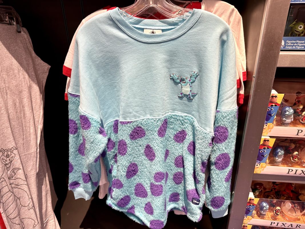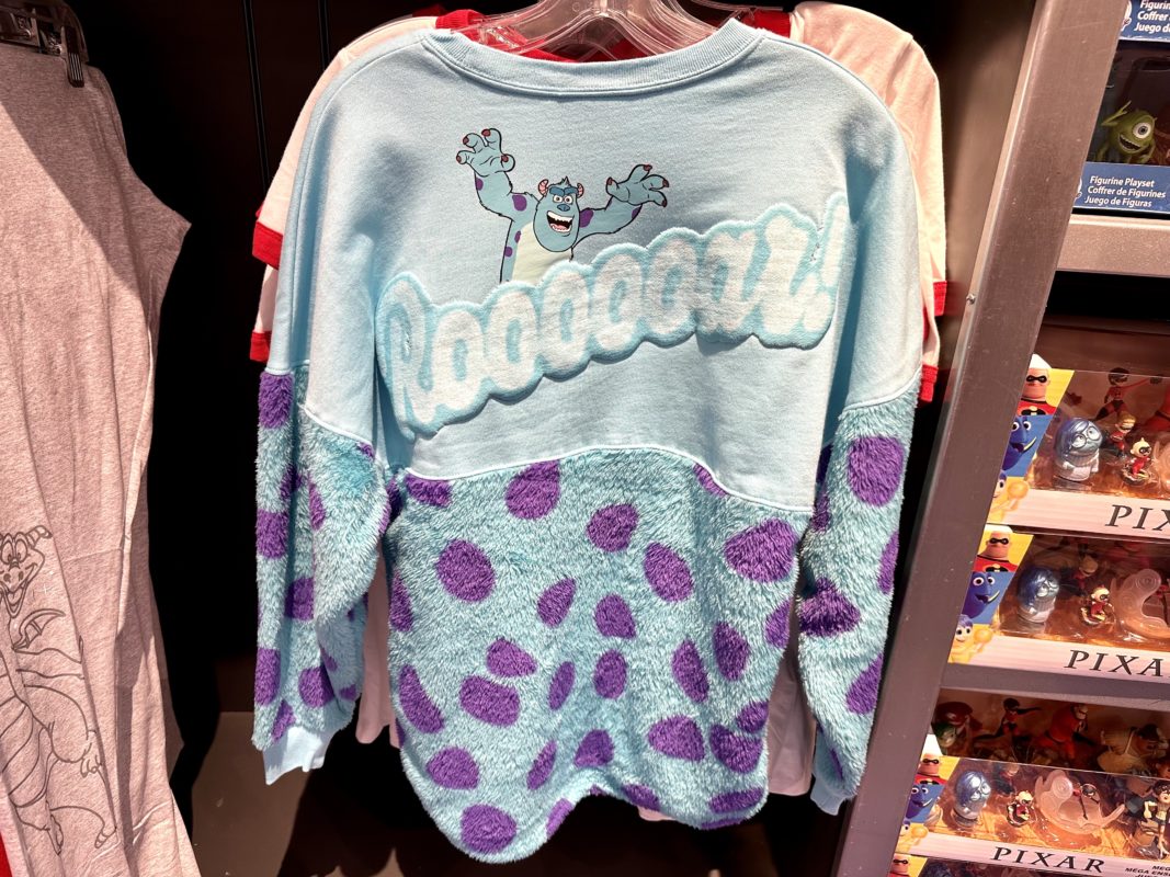 A new fuzzy “Monsters, Inc.” Spirit Jersey is now available in ImageWorks. This Spirit Jersey features Sulley on the front and fuzzy blue and purple polka dots on the bottom to replicate his fur.
