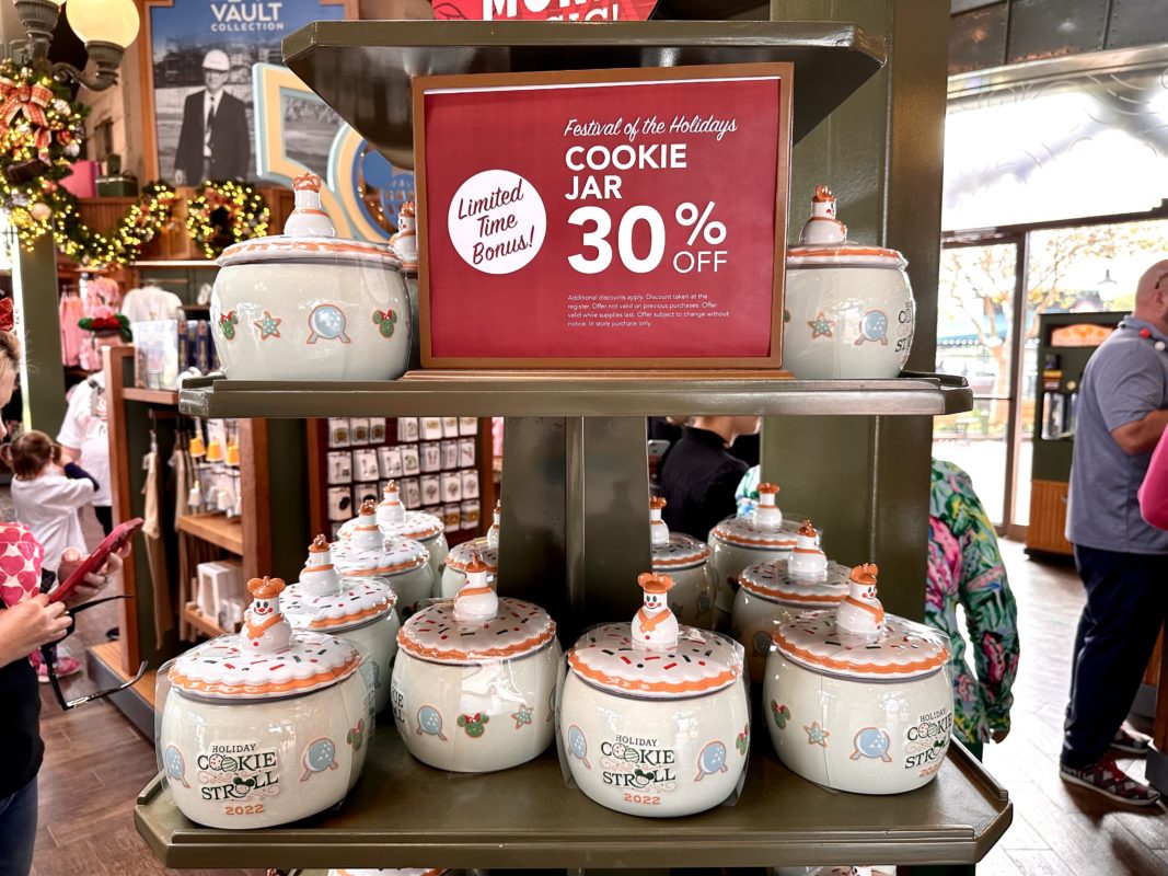 We spotted more sales and deals on merchandise in EPCOT including this Holiday cookie stroll jar, which is now 30% off.