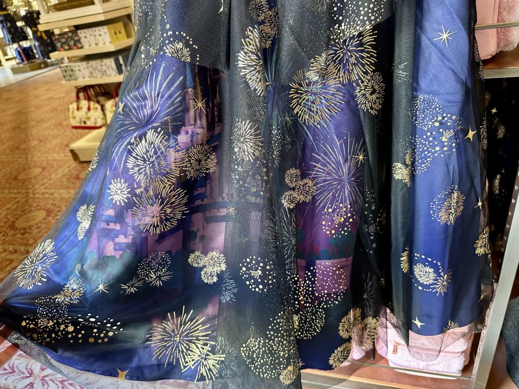 The dress features Cinderella Castle and Mickey shaped fireworks all over.