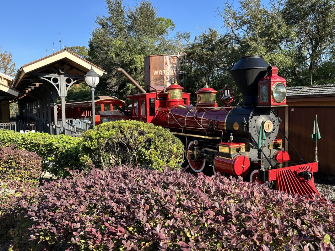 As we walked down Main Street, U.S.A. we heard the train whistle and decided to go investigate. The Walter E. Disney train was parked out at the Main Street Train Station. They were still doing testing but we’re hoping the train will be opening soon.