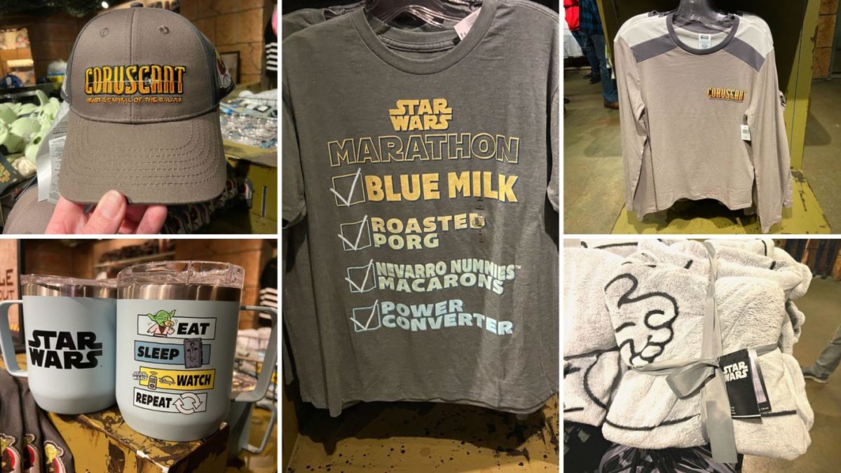 New “Star Wars” merchandise, including a marathon collection and items from the Coruscant collection that debuted with a Yoda plush, is available at Disneyland Resort. We found these items in Star Wars Trading Post at Downtown Disney District.