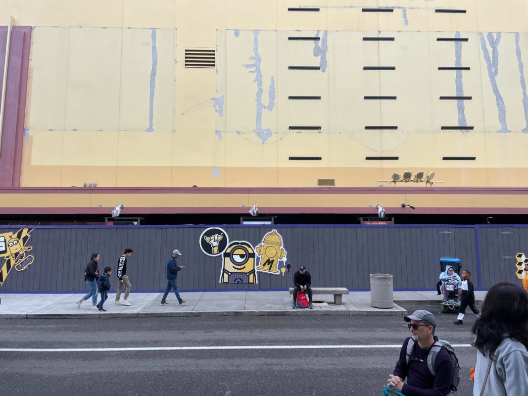 Now that Villain-Con Minion Blast has been officially announced to replace the retired Shrek 4-D attraction at Universal Studios Florida, exterior theming is being added. We spotted themed posters in the queue today.