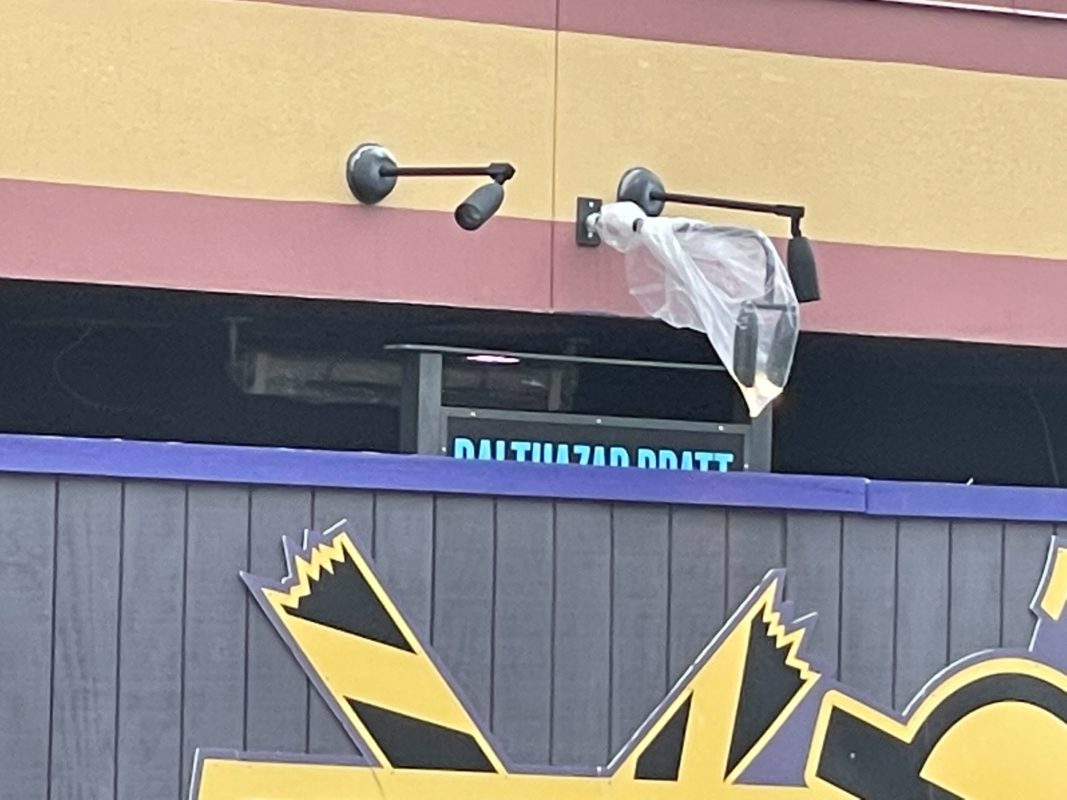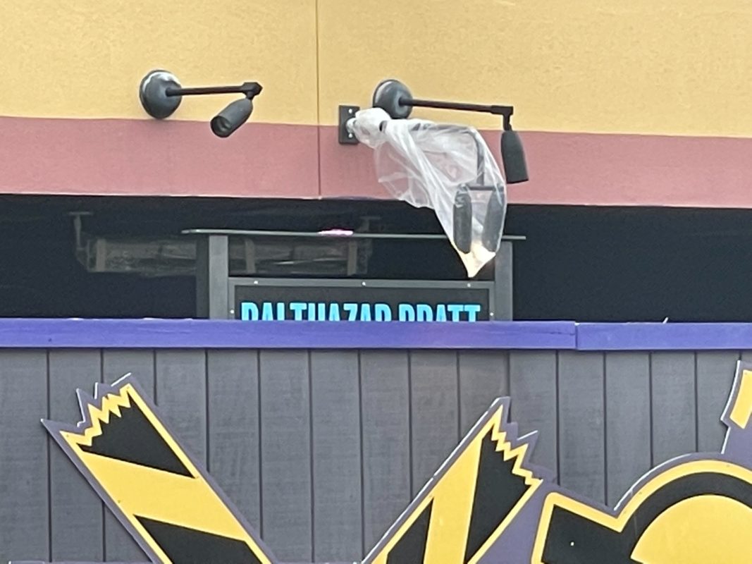The poster frames are a holdover from Shrek, which lined the queue with storybook pages and posters for fake attractions like the “Enchanted Tick Room.”
