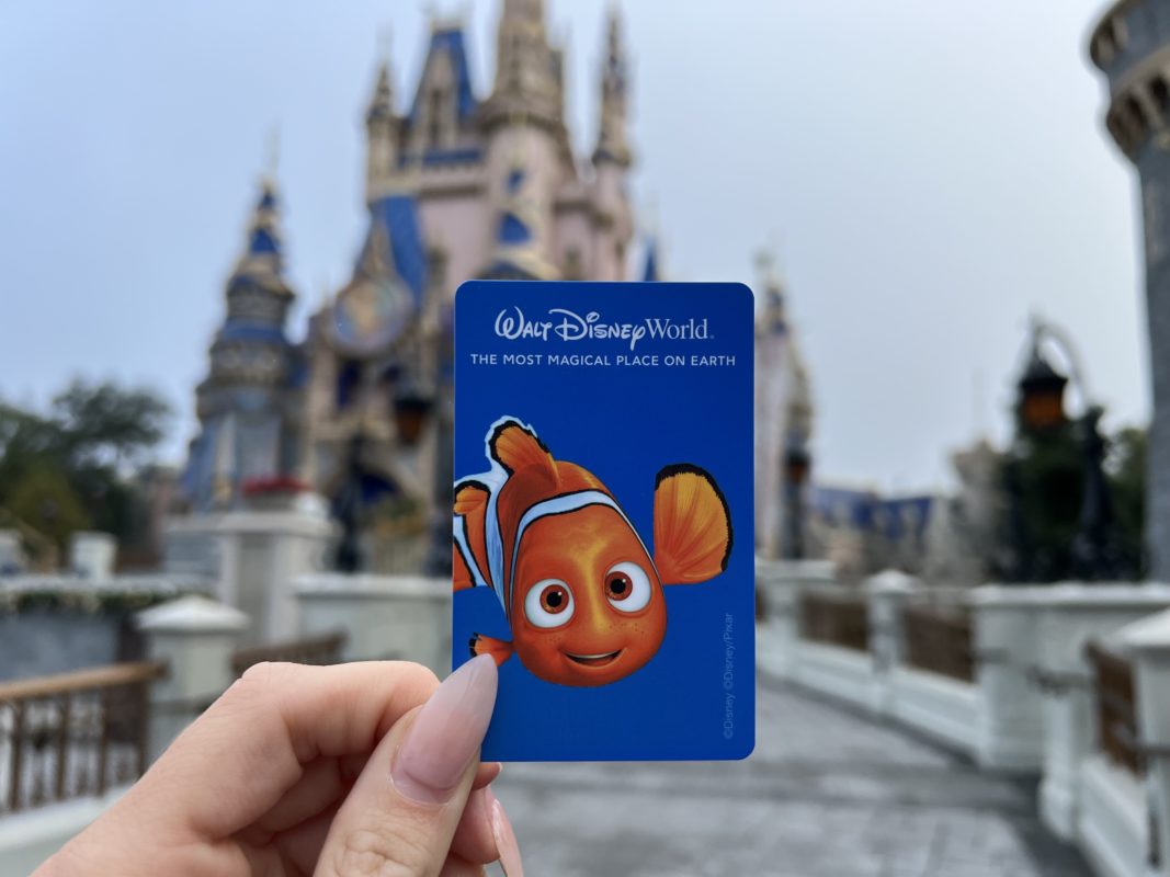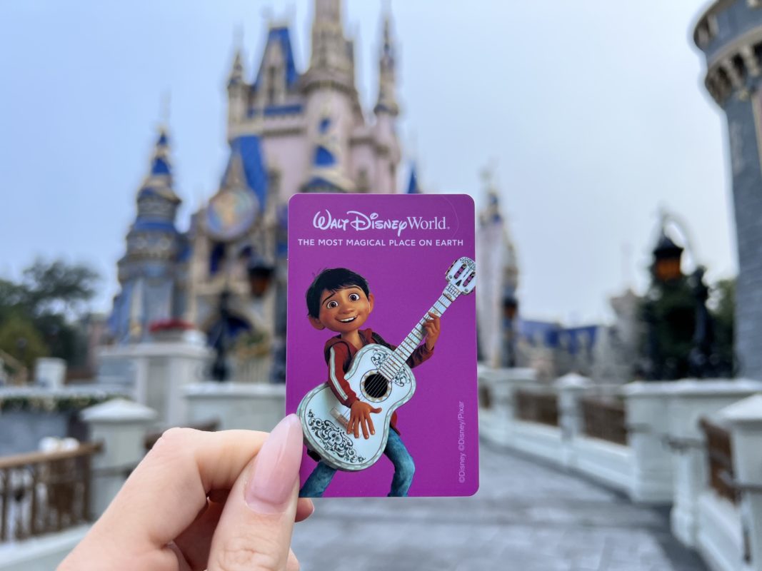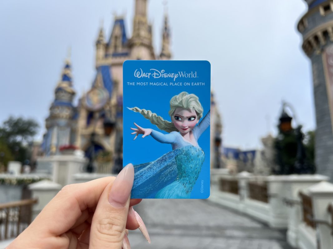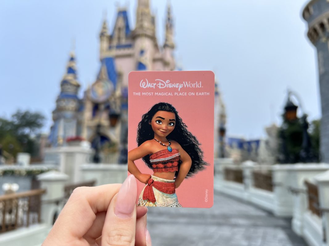 The new designs have solid colored backgrounds, with “Walt Disney World” and “The Most Magical Place on Earth” in white at the top. These are being given to guests at the parks, and we assume also being used for Key to the World cards for resort guests.