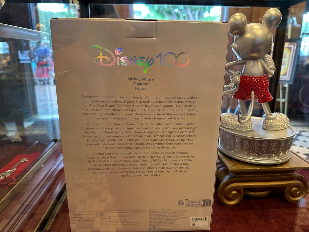 The base he stands on has an art deco design, with the Disney100 logo on the front.