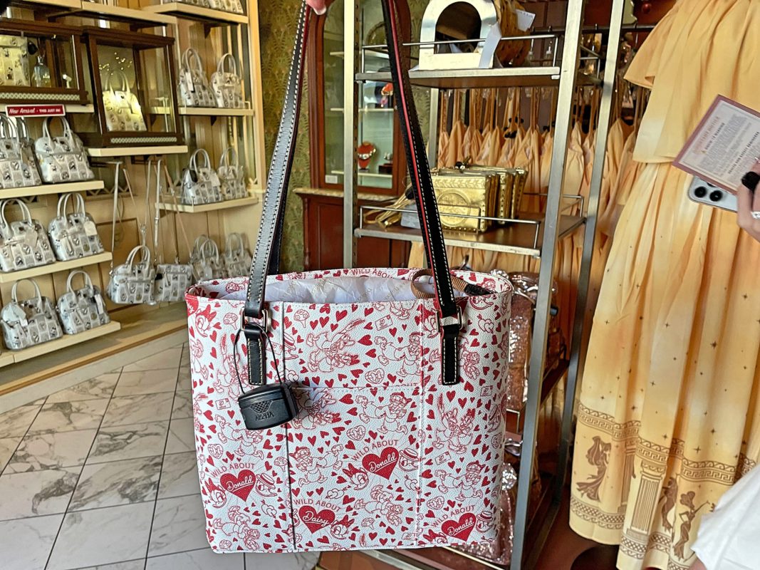 Love is in the air — especially for Donald & Daisy Duck. We found the new Donald and Daisy Duck Dooney & Bourke Valentine’s Day collection at Uptown Jewelers on Main Street, U.S.A., at Walt Disney World.
