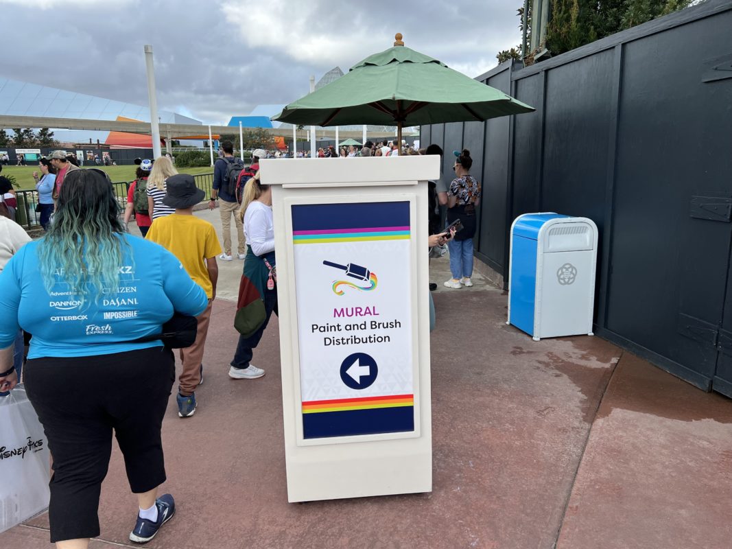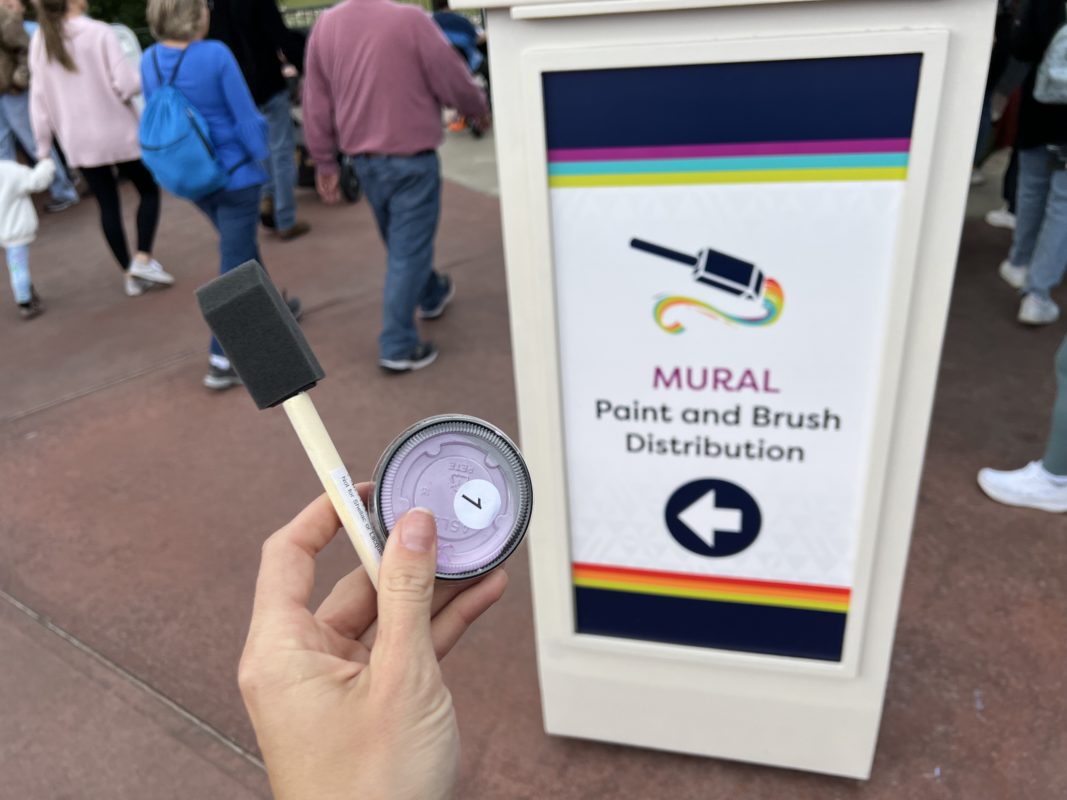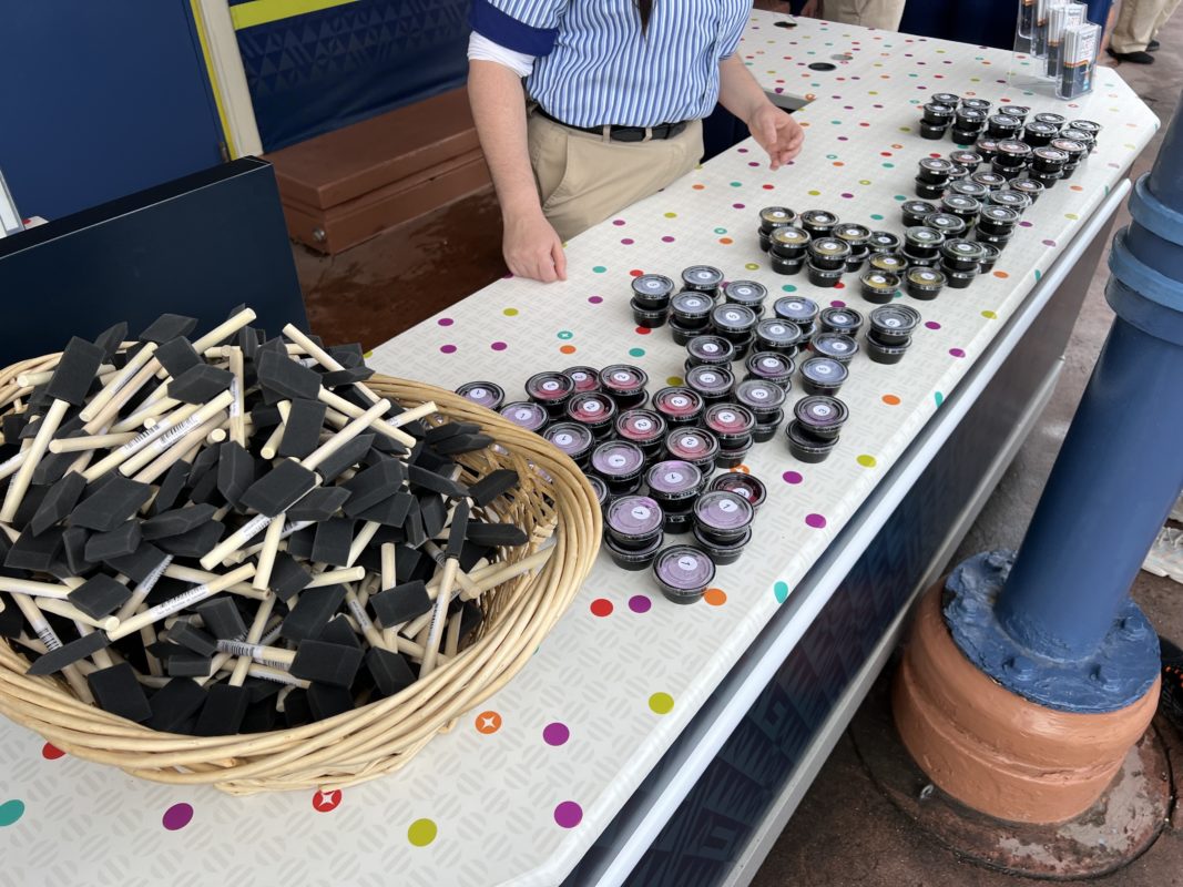 Just steps away, you’ll find the mural to be painted. It’s divided up into sections to prevent crowding. A Cast Member will direct you to your designated section.