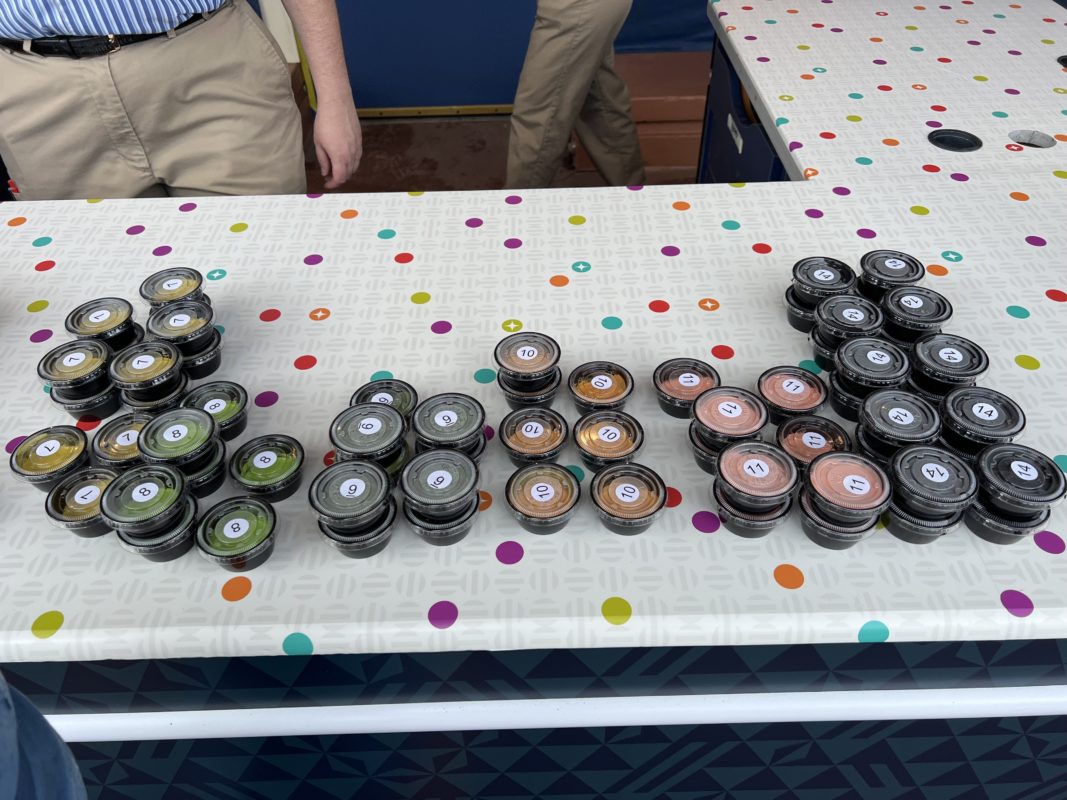 There, guests receive a paintbrush and a small container of paint with a number on the lid.