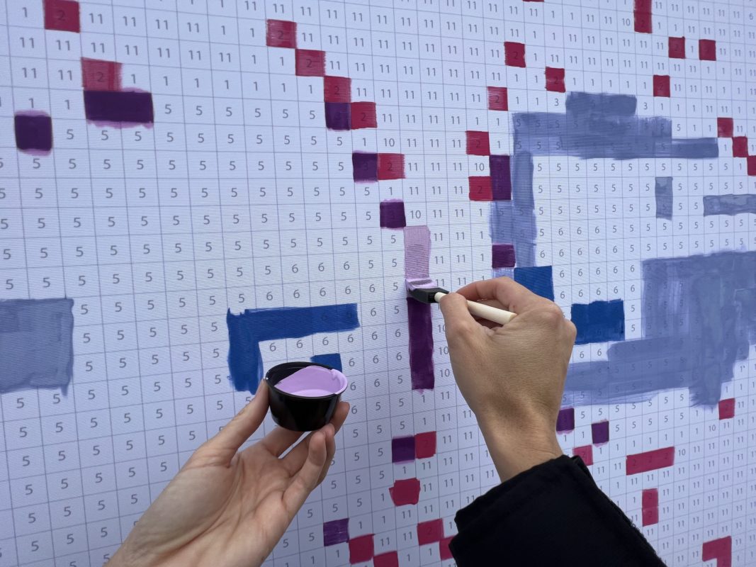 Once there, paint the squares with the number on your lid to help bring the mural to life! Guests are allowed to paint up to six squares.