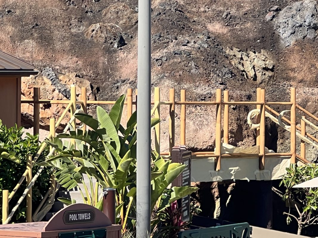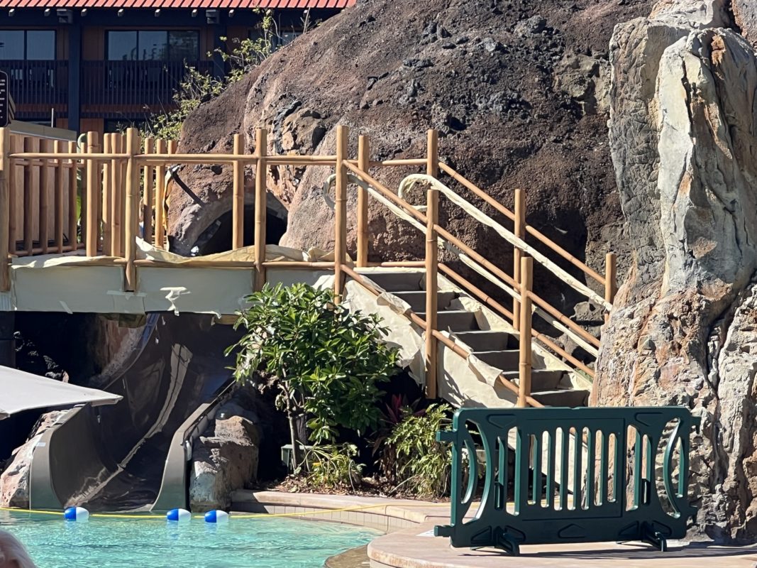 While the routine maintenance closure was announced in December, the WDW News Today team spotted a crew hard at work near the Lava Pool last week. The waterslide refurb comes as construction continues on the new Disney Vacation Club wing at Disney’s Polynesian Village Resort.