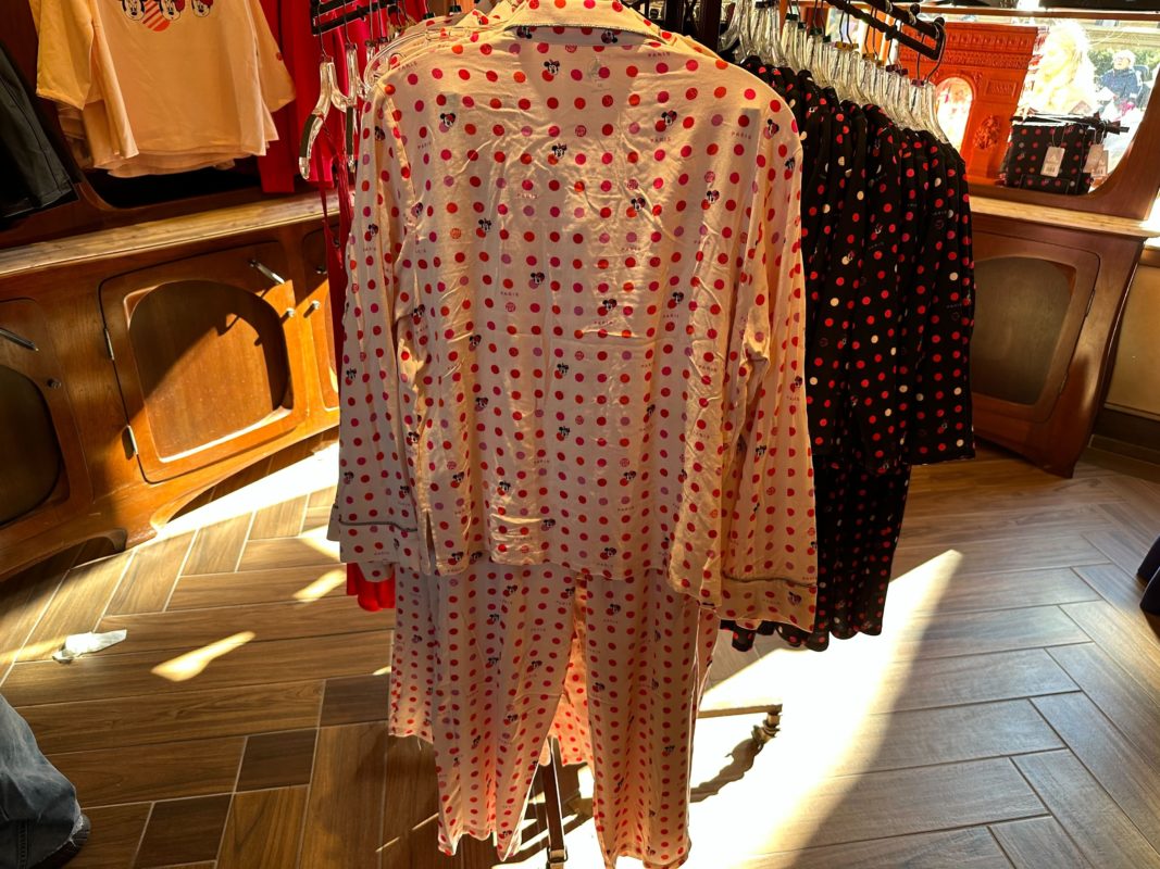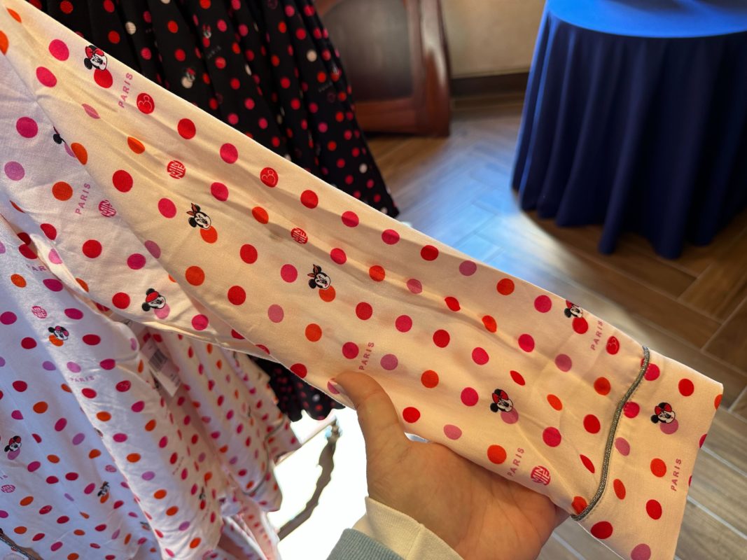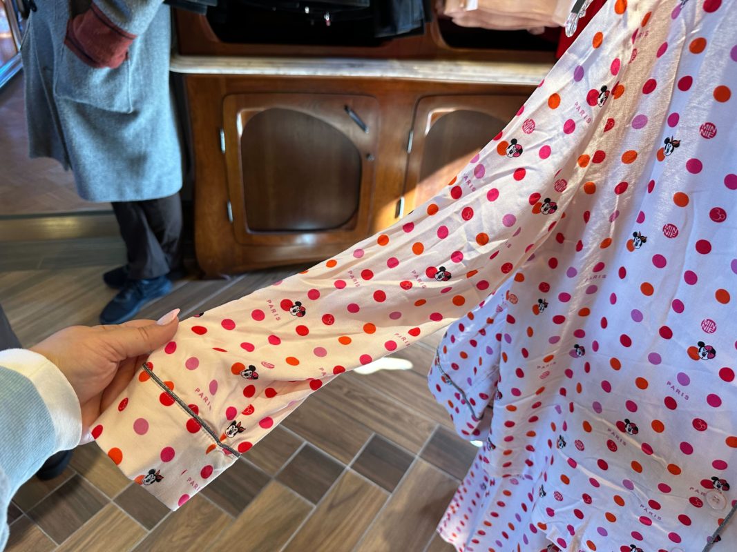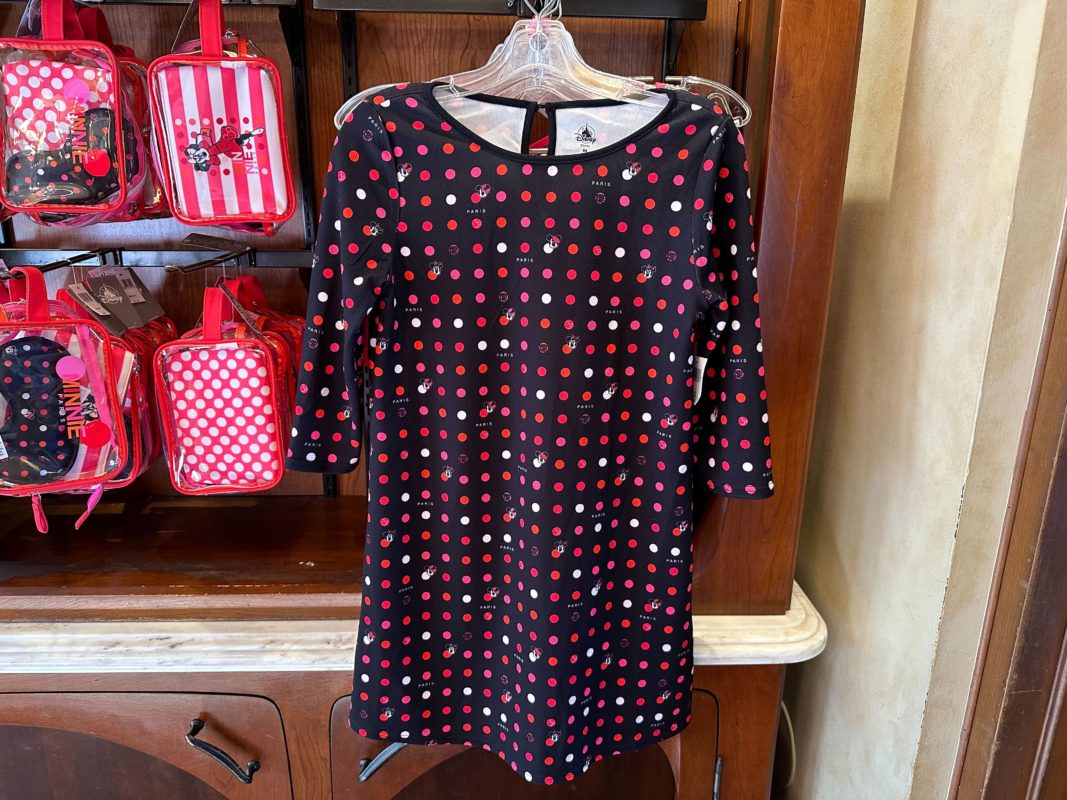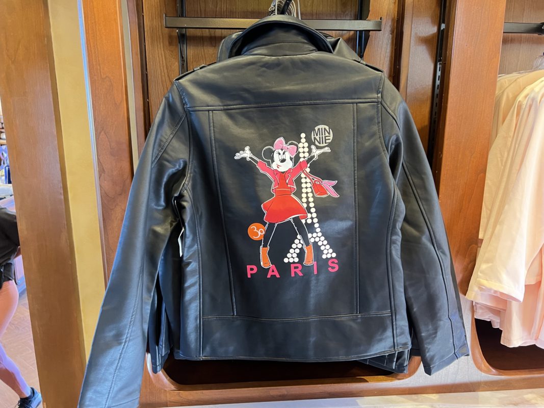 More of the Disneyland Paris 30th anniversary “Minnie Paris” collection has arrived at the France Pavilion in EPCOT. We previously found various apparel, bags, and a poncho. Now guests can collect a faux leather jacket, umbrella, dress, blouse, and long-sleeved pajama set.
