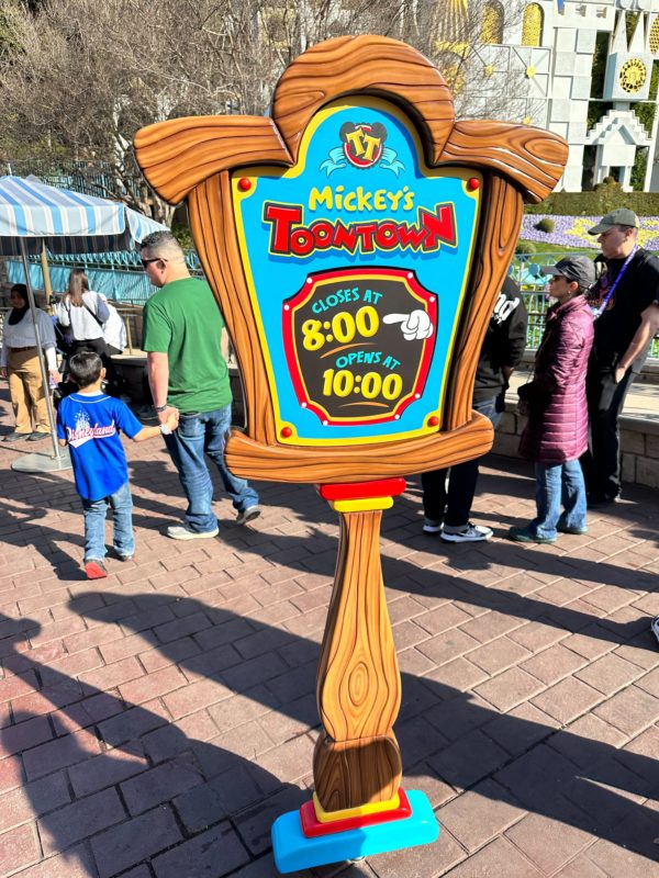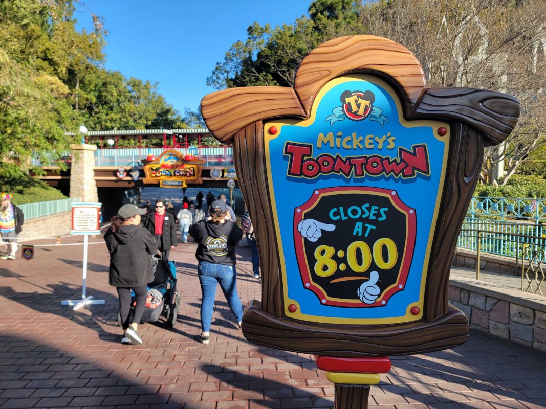 On days when the park closes earlier, the sign just says Mickey’s Toontown closes at 8:00 p.m.