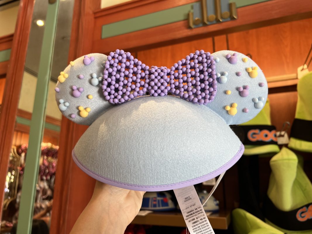 A quirky new Minnie Mouse beaded hat has hit the shelves at Celebrity 5&10. Mickey-shaped beads in pastel shades decorate the ears, and a beaded bow sits in the center of the cloth hat.