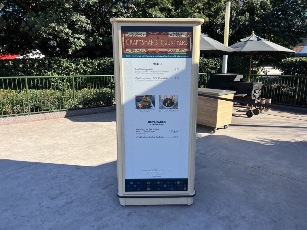 Craftsman’s Courtyard, which sits across from Creations near Test Track, was the first menu we spotted.