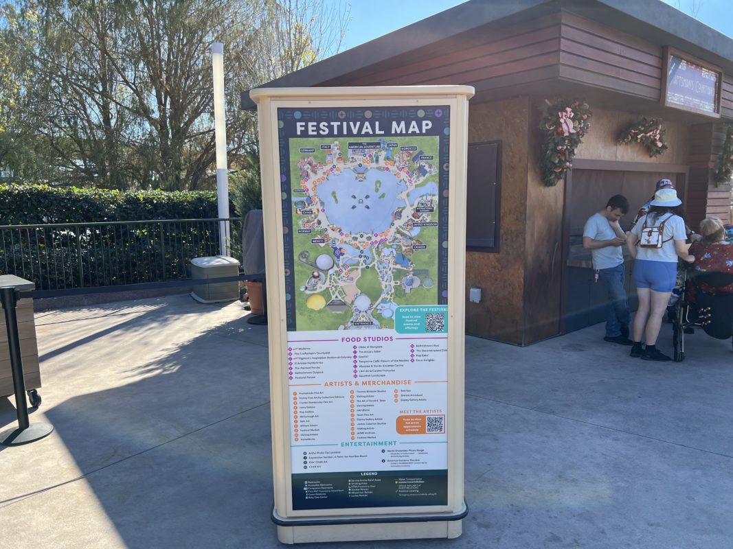 The opposite side has the festival map. Here, you see a list of all the food studios, artists, merchandise, and entertainment to expect.