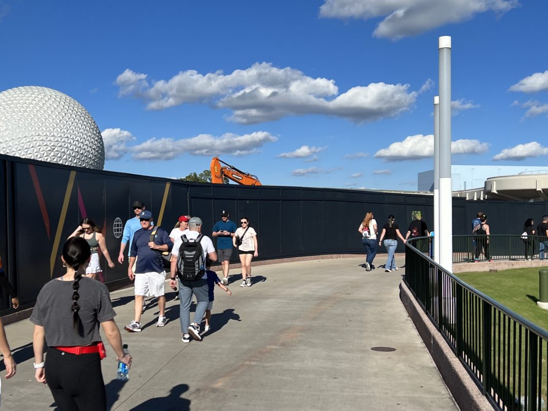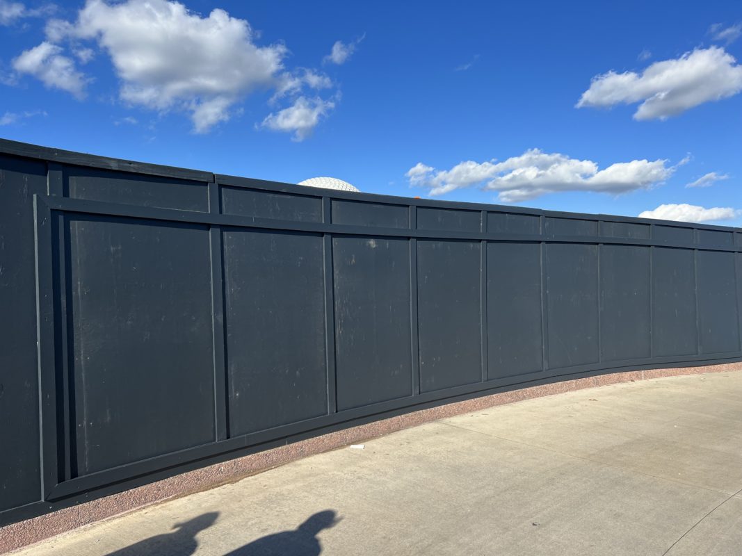 The walkway from Imagination! Pavilion towards Creations has part of its construction walls framed off for the “Drawing on Inspiration” murals soon to come for the festival.