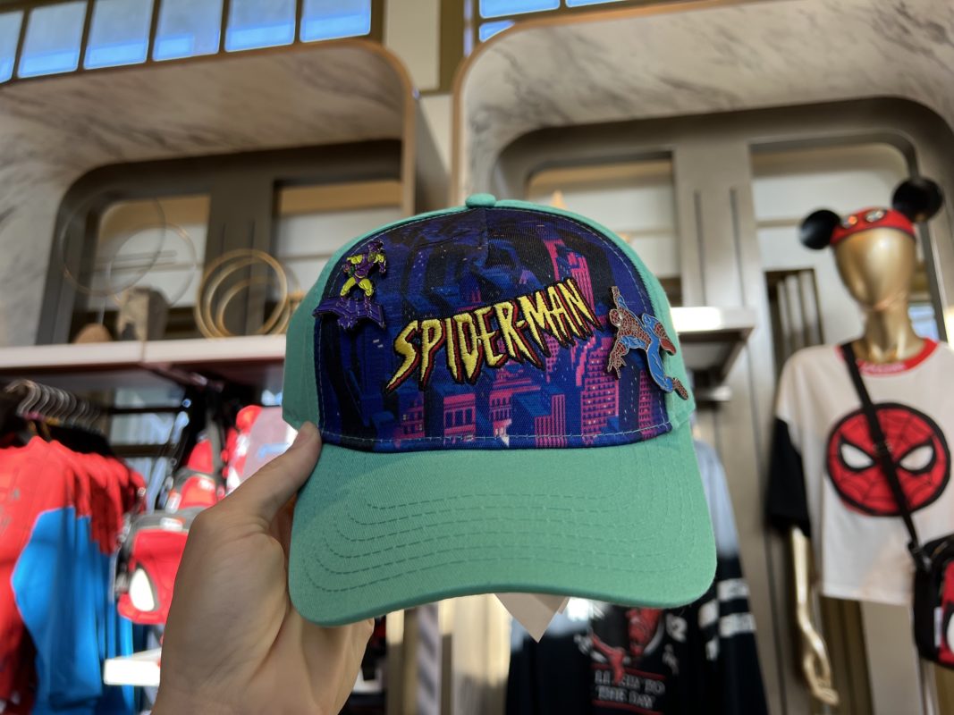 Keystone Clothiers has a fun and colorful new Spider-Man hat in the MARVEL section. Two pins are on this teal hat with a cityscape in the background. You can take the hat home for $29.99.