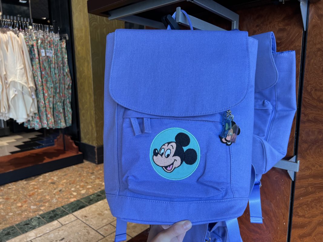 A very cute vintage-style Mickey and friends purple backpack arrived at Sunset Club Couture. The backpack has a Mickey and Minnie keychain with two “M”s on the zipper. The backpack is $44.99.