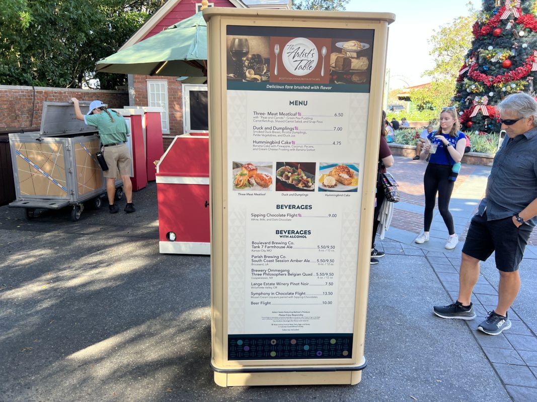 Menu for The Artist’s Table at the 2023 EPCOT International Festival of the Arts