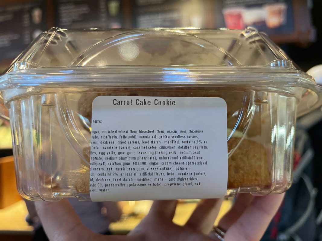 It’s renamed on the temporary sign alone, with even the label on the package still reading “Carrot Cake Cookie.”