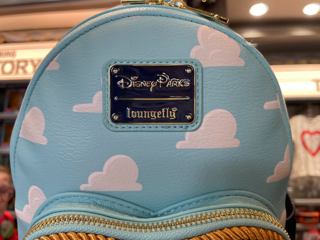 The backpack is mainly light blue with white clouds — the iconic wallpaper of Andy’s room.