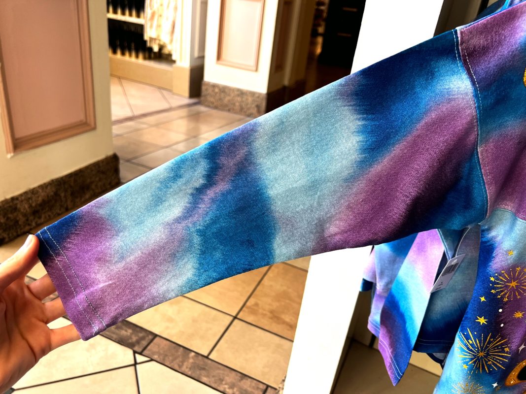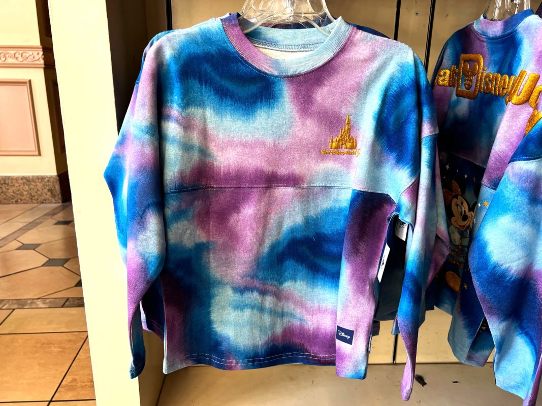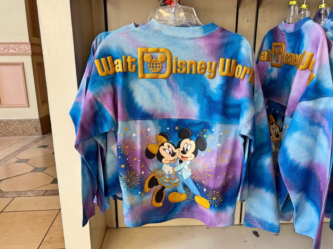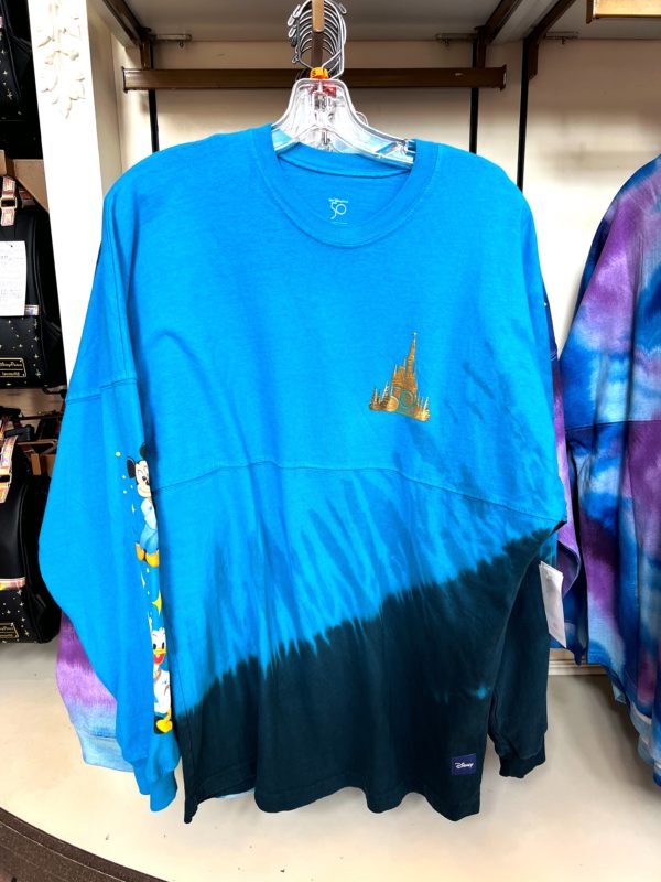 Walt Disney World’s 50th anniversary grand finale tie-eye spirit jersey, which also comes in an adult version, has shades of blue, purple, and white woven throughout the jersey.