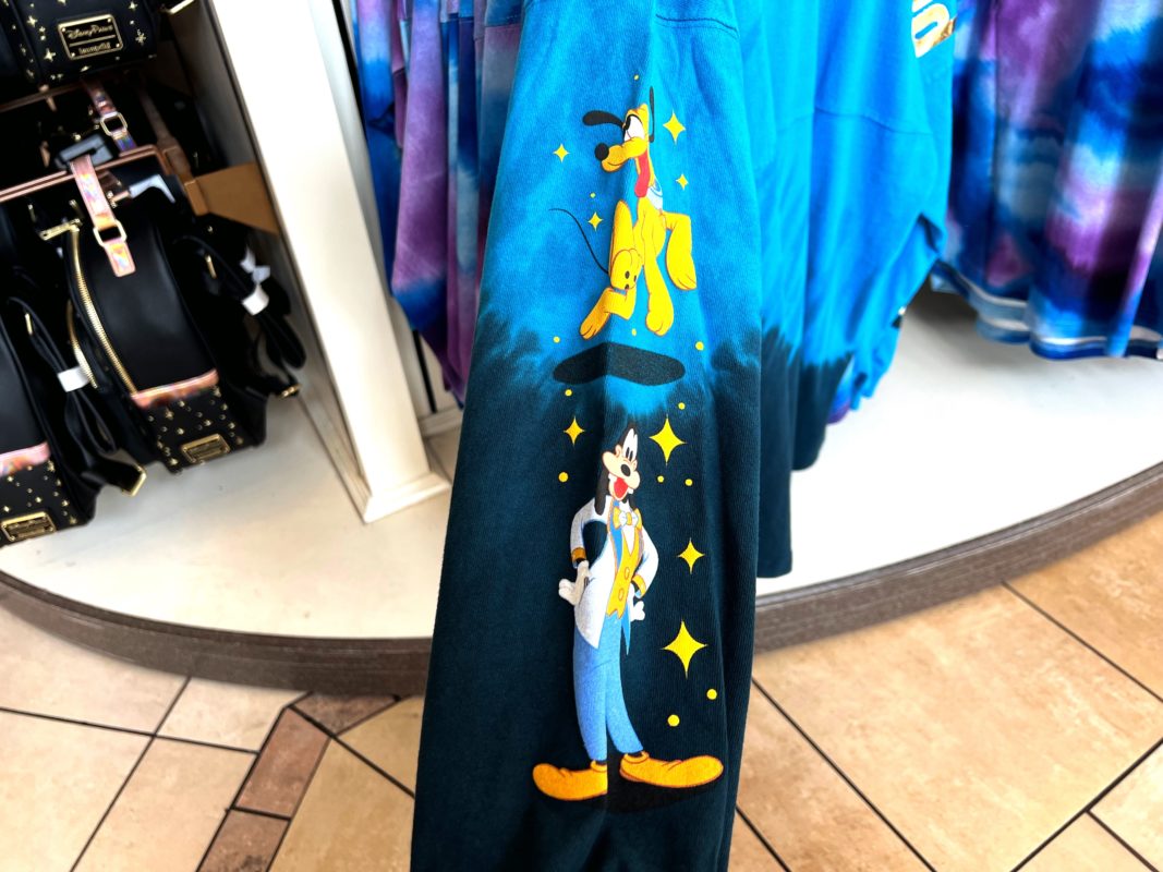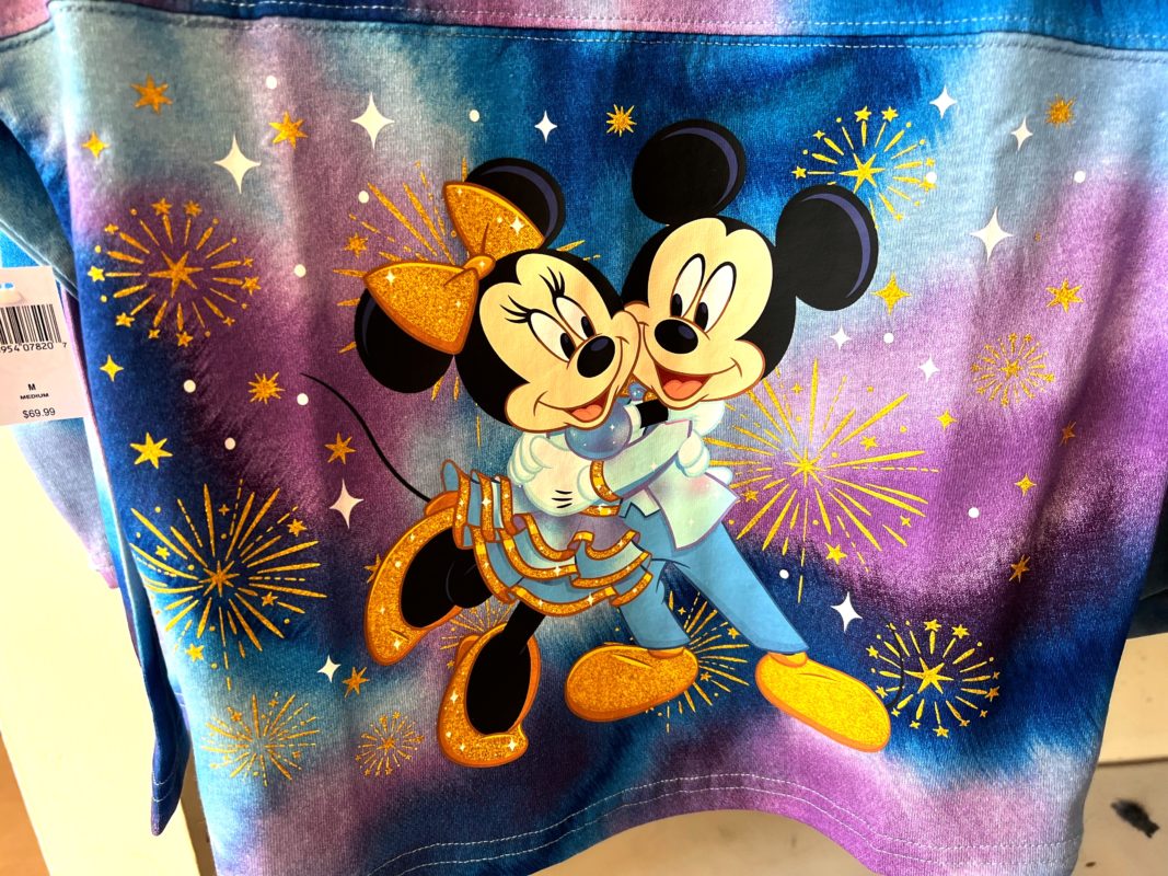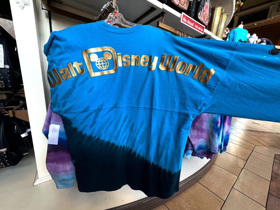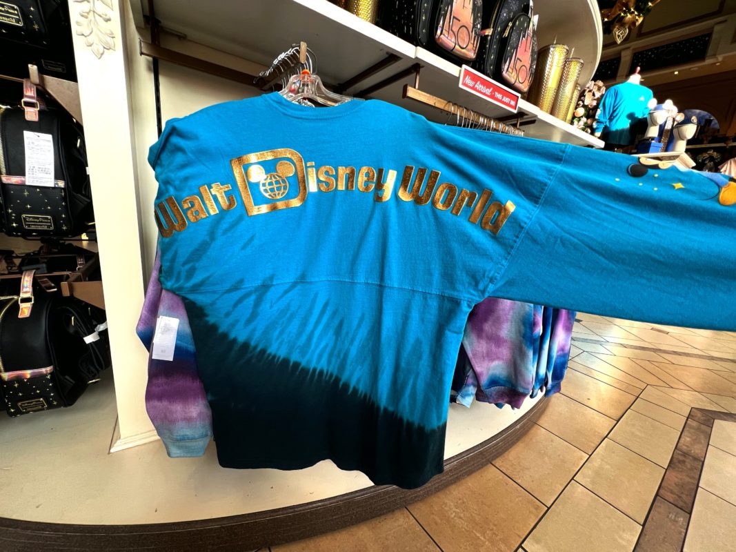 Walt Disney World’s 50th anniversary grand finale tie-eye spirit jersey, which also comes in an adult version, has shades of blue, purple, and white woven throughout the jersey.