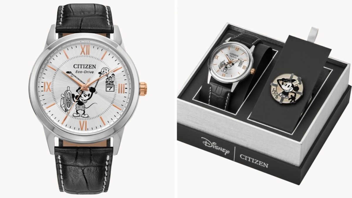 The 100 Years of Wonder celebration is in full swing at Disneyland Resort, and new Disney100 merchandise is showing up everywhere. Citizen has now gotten into the action with this Steamboat Willie Eco-Drive watch and matching pin box set!