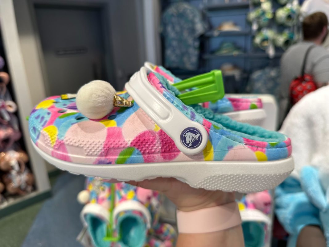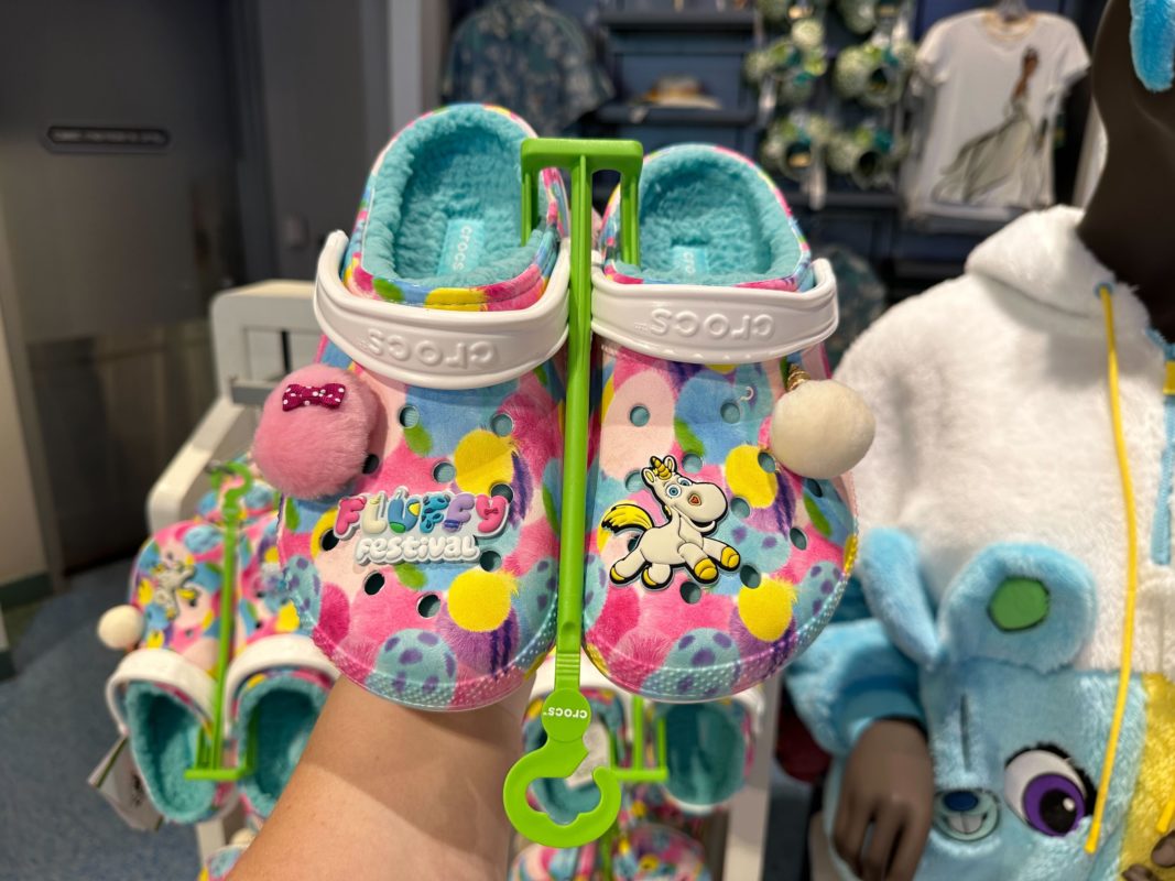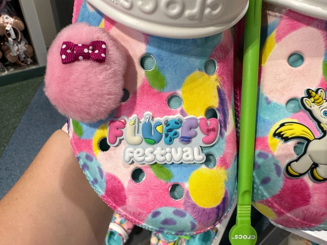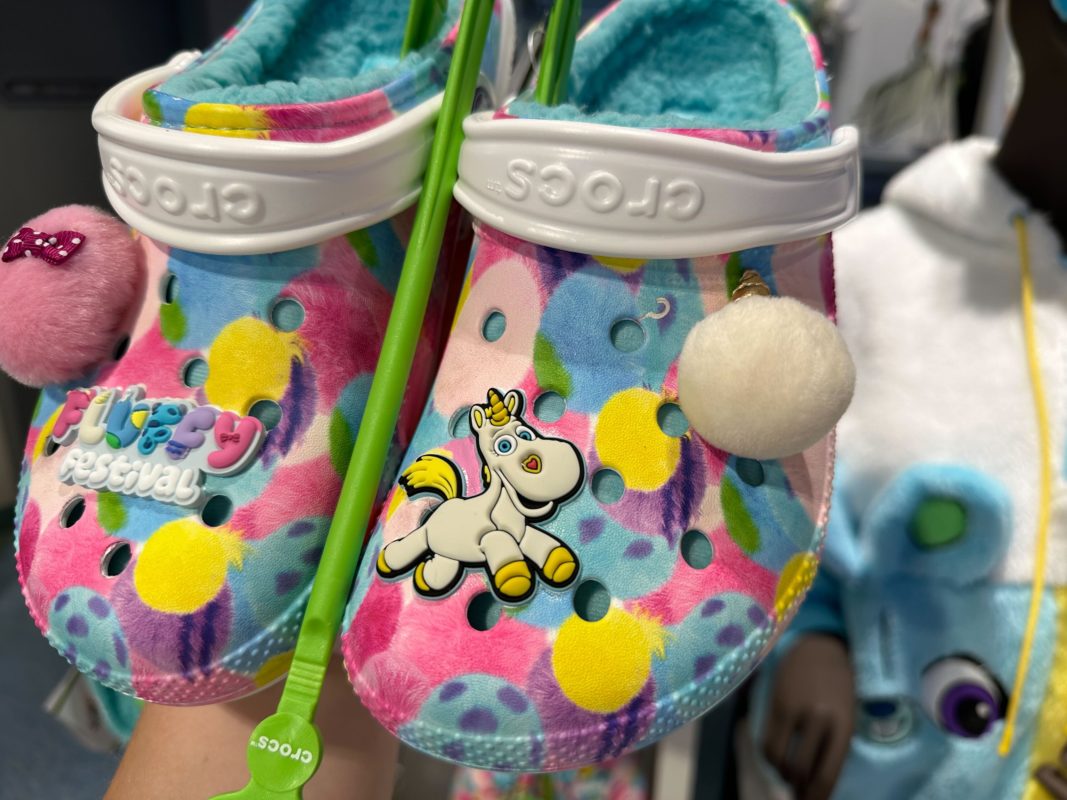 A Jibbitz charm on one of these shoes says “Fluffy Festival,” the name used for Pixar merchandise featuring some of their fluffiest characters.