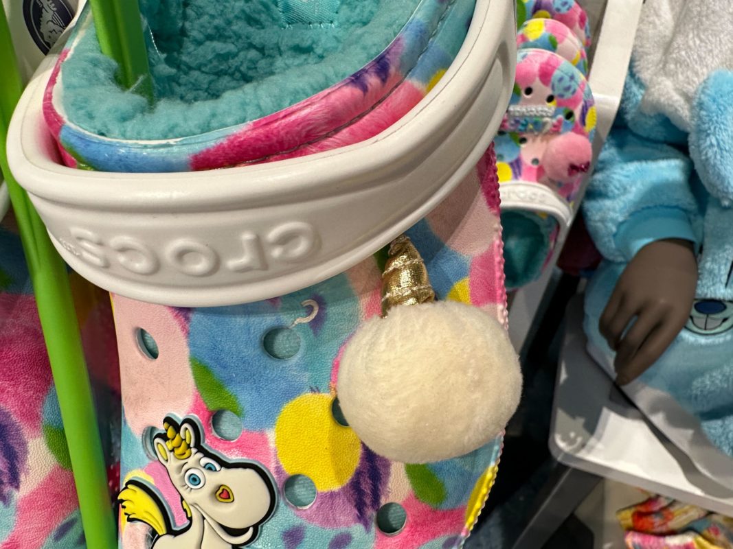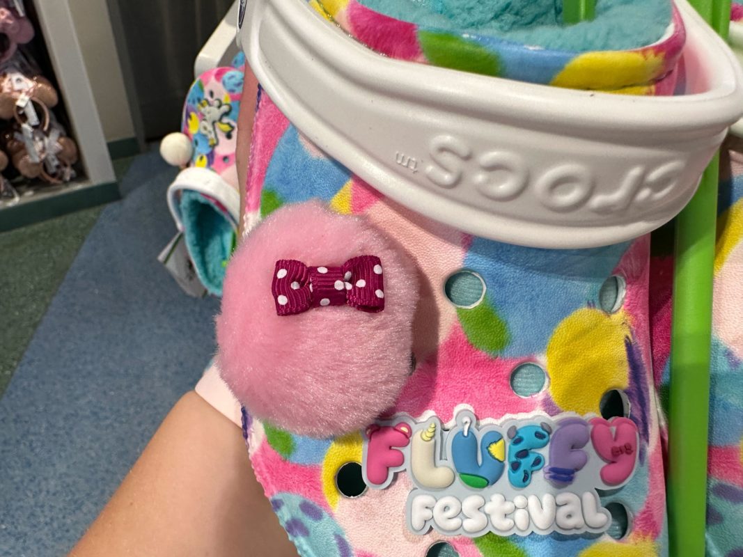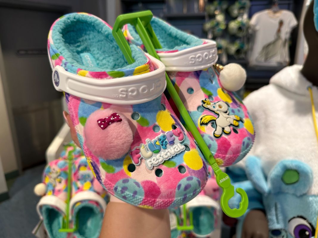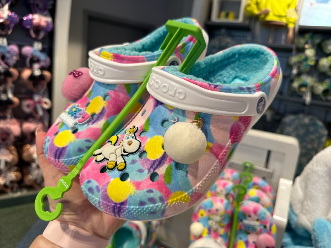 A Jibbitz charm on one of these shoes says “Fluffy Festival,” the name used for Pixar merchandise featuring some of their fluffiest characters.