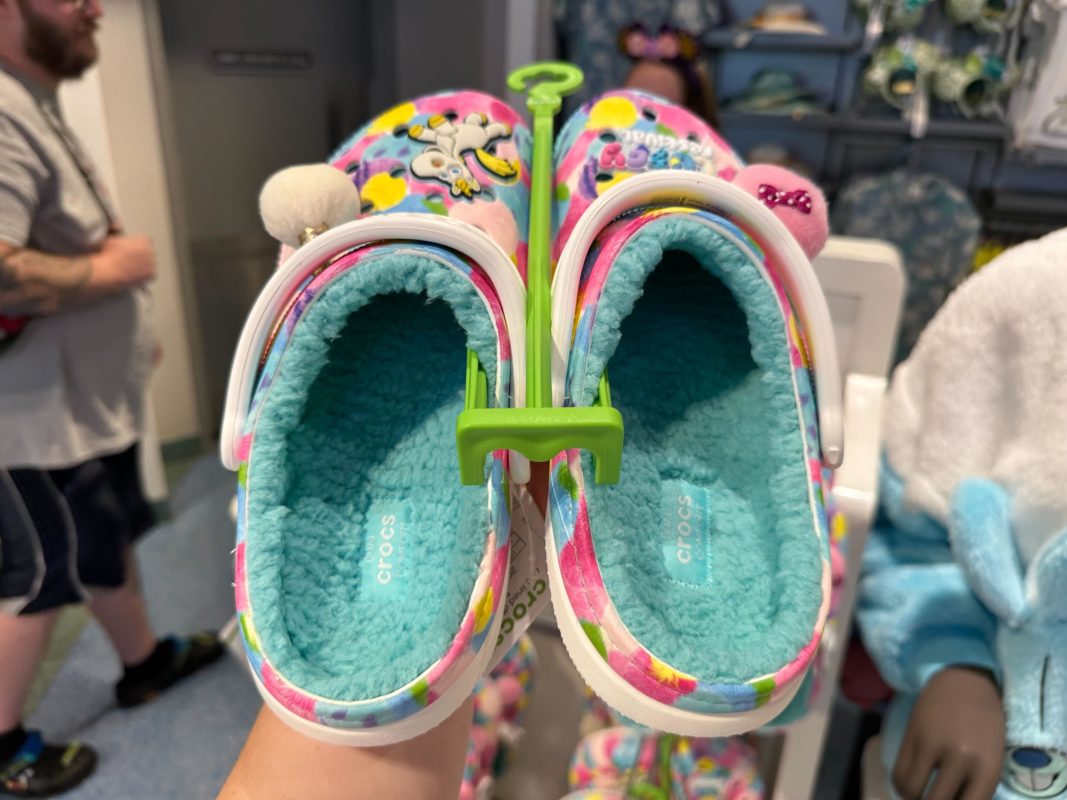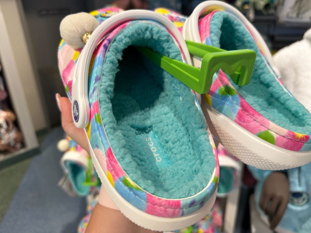 New fluffy Pixar merchandise is available at Walt Disney World. We found these fluffy Crocs, Sulley ears, and Ducky and Bunny ears in Star Traders at Magic Kingdom.