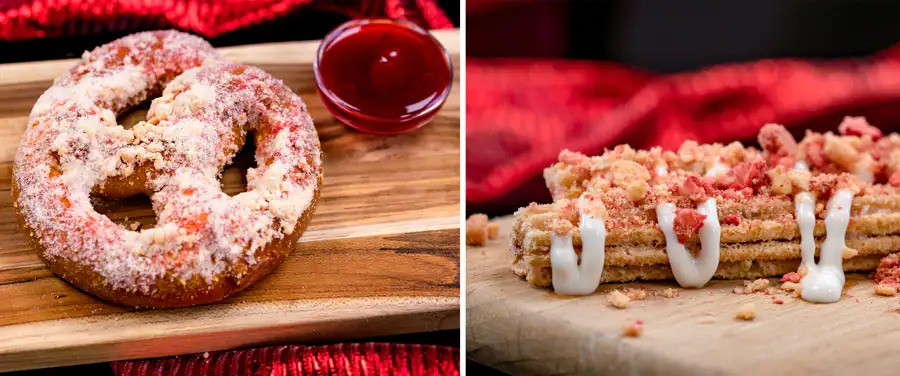 - Strawberry Cookies & Crème Churro: Strawberry and Butter Cookie-dusted Churro with Vanilla Buttercream Drizzle and Strawberry Cookie Topping