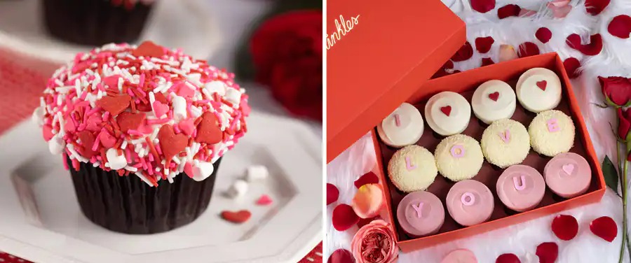 - I Love You Box: Four red velvet, four vanilla, and four raspberry chocolate chip cupcakes