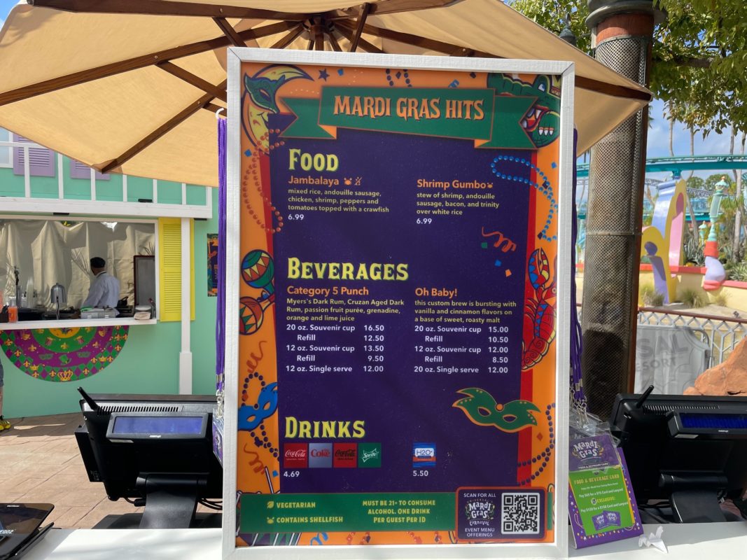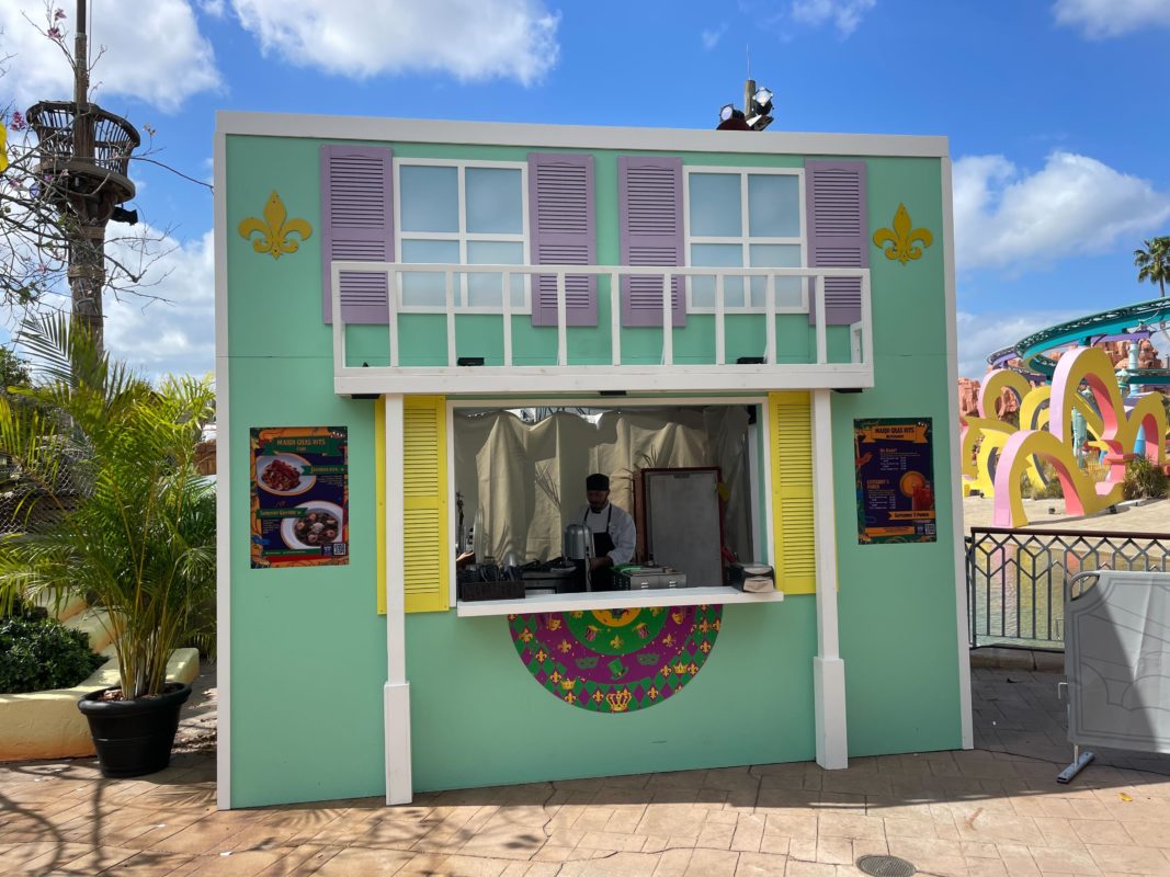 Universal’s Islands of Adventure is getting in on the Mardi Gras fun this year with two food booths in Port of Entry. The Mardi Gras Hits booth has festival favorites.