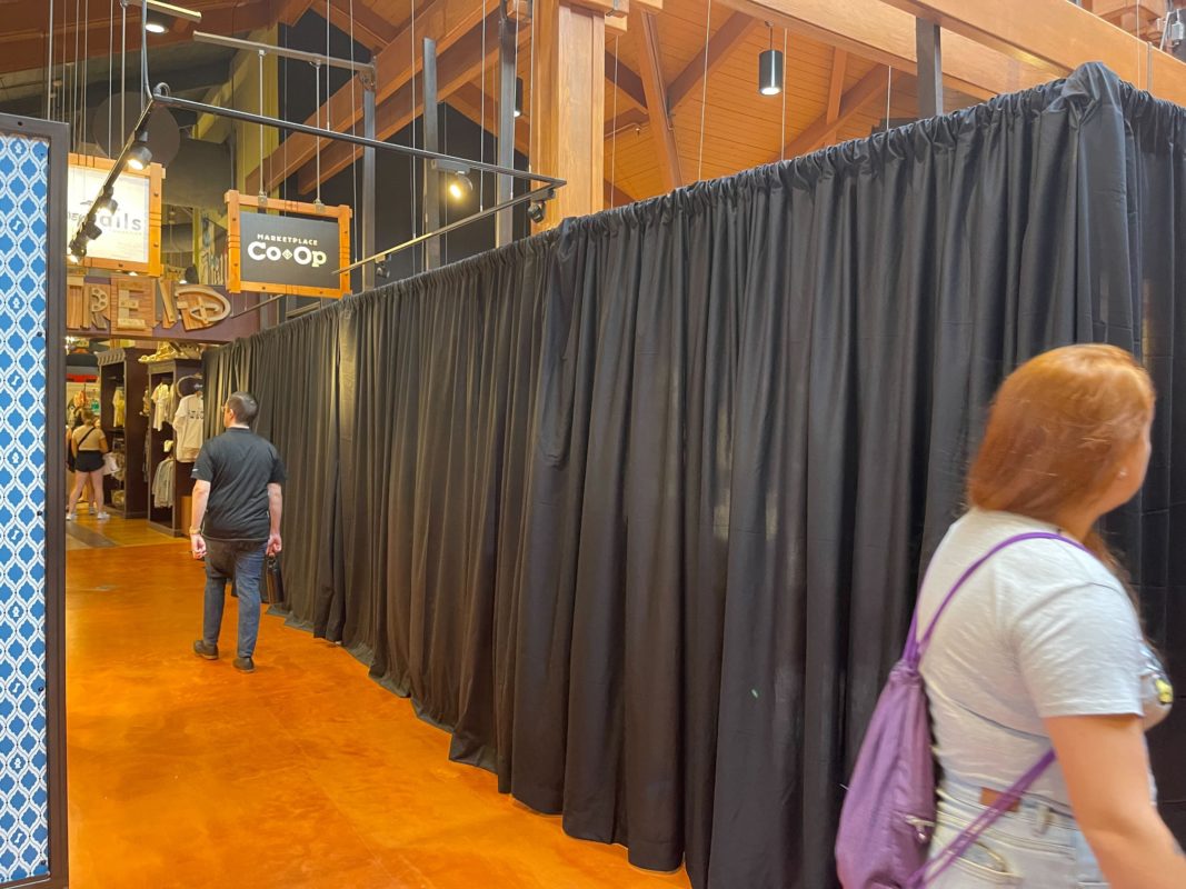Black curtains are around the shop. When it opened in October, the National Geographic store replaced WonderGround Gallery.